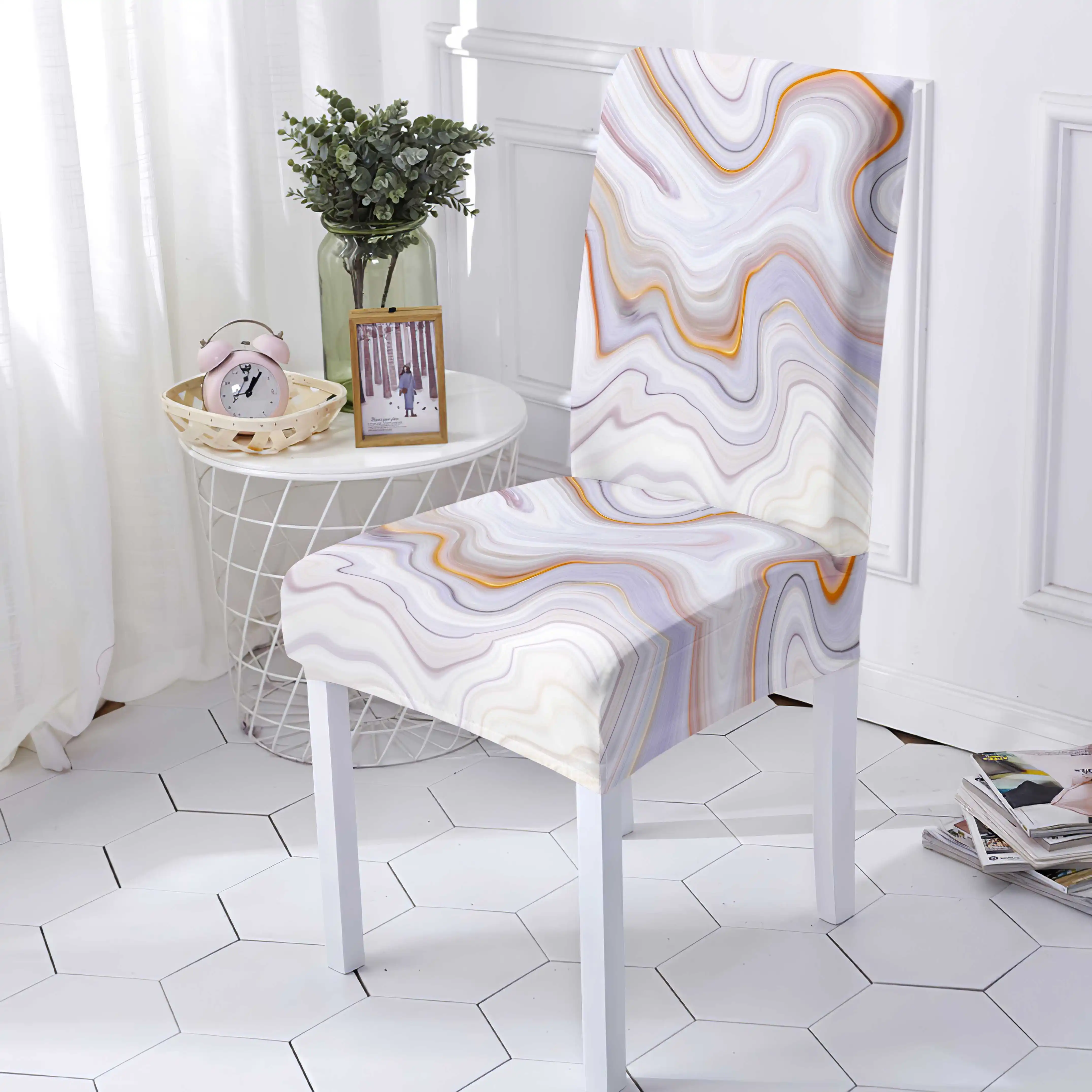 Чехлы из полиэстера в мраморном стиле на кресло стрейч для столовой...