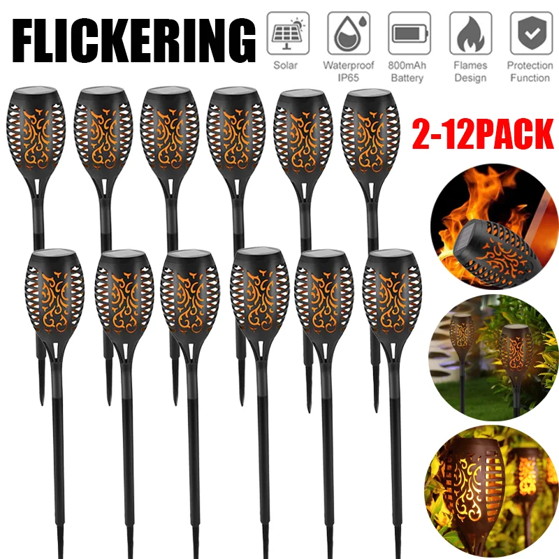 Лампа на солнечной батарее, водонепроницаемая, для сада, с мерцающим пламенем, 12 светодиодов