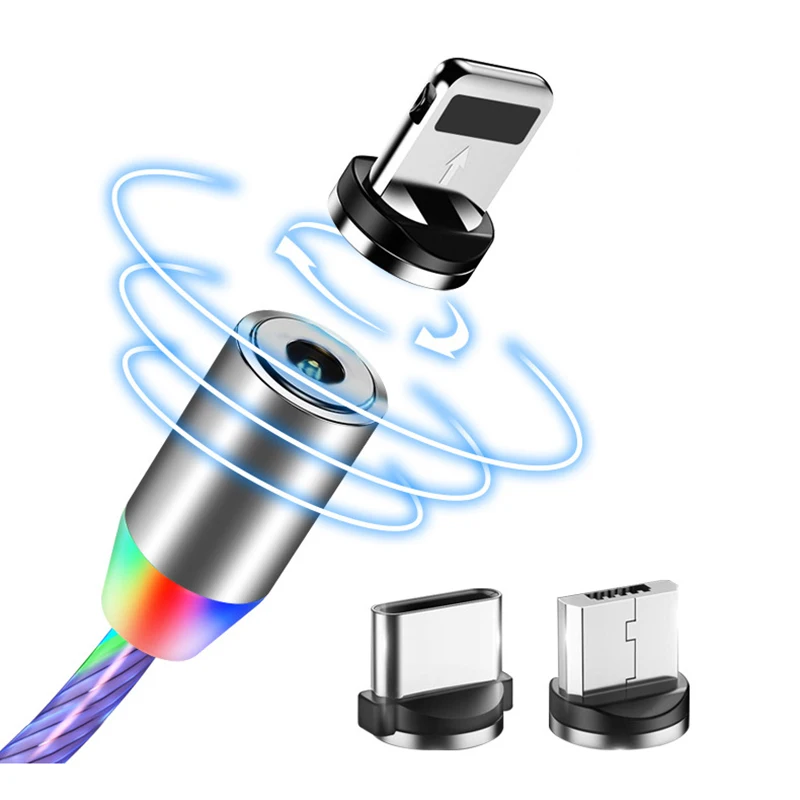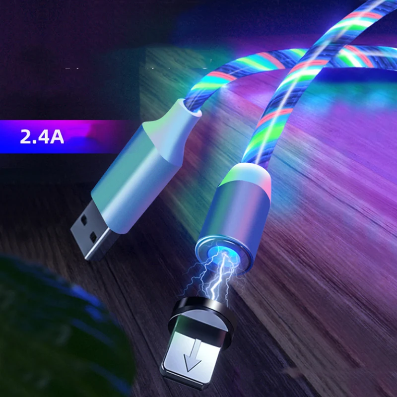 Зарядный кабель Micro USBType-C, С Магнитным потоком, со светодиодной подсветкой, мобильный телефон, для Iphone