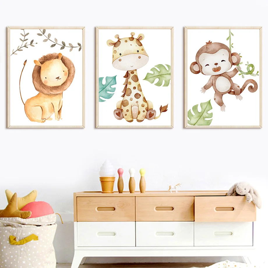 Плакаты и принты для детской комнаты, Лев, жираф, тигр, слон, носор...