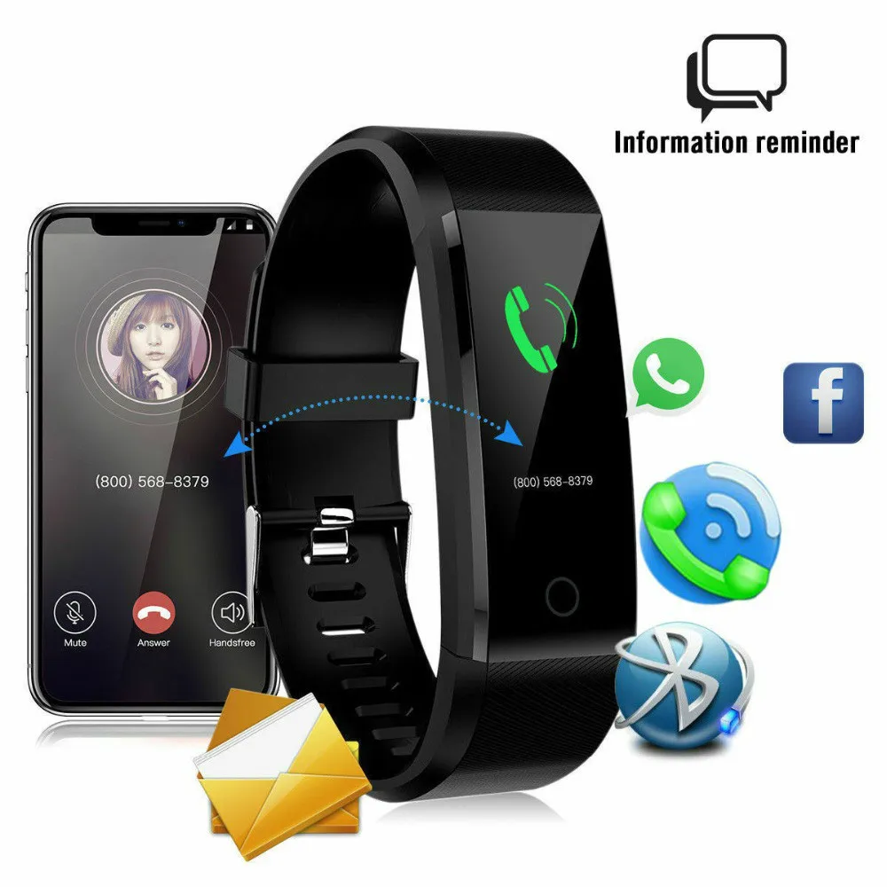 Смарт-браслет HSXDWD 115 Plus, совместимый с Bluetooth, водонепроницаемые Смарт-часы с пульсометром и фитнес-трекером