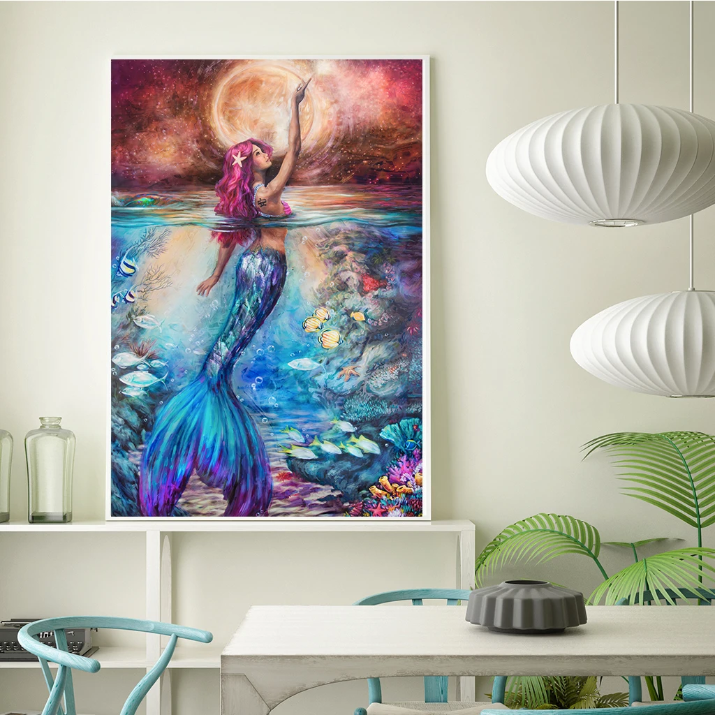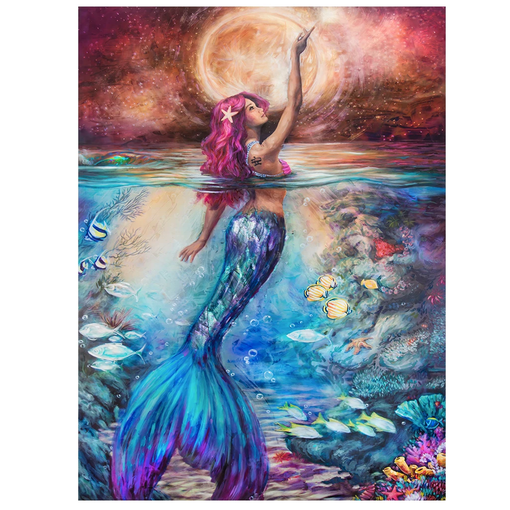 5D алмазная живопись сделай сам, Русалка, Круглый Алмаз, вышивка крестиком стразы, мозаика, ручная работа, украшение, подарок