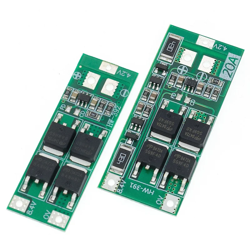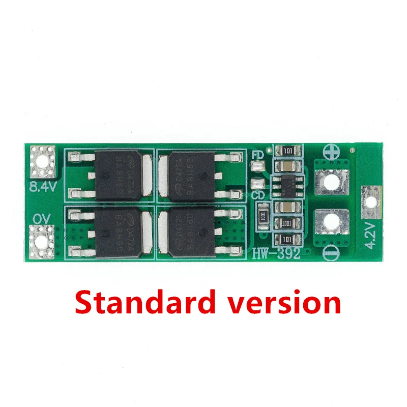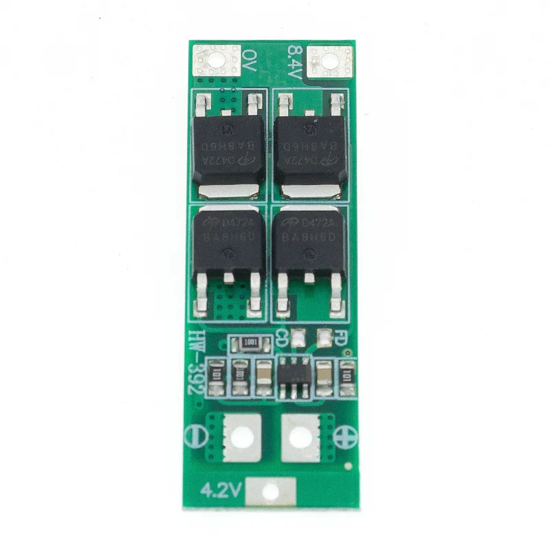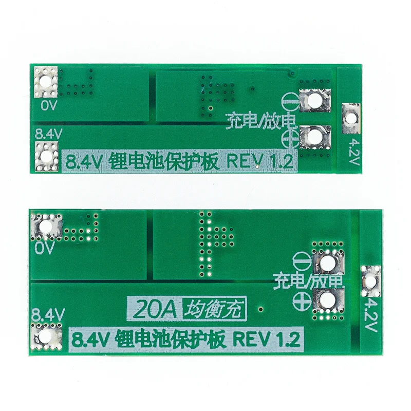 Применимый диапазон: подходит для литиевых батарей с номинальным напряжением 3,7 в и полным напряжением 4,2 в (включая 18650, 26650, полимерные литиевые батареи, без ограничений по размерам) Размер продукта: 45*15*3,4 мм (стандарт), 48*20*3,4 мм (балансировка) Напряжение зарядки: 8,4-9,0 в Постоянный ток разряда (верхний предел): 20 А (если охлаждающая среда плохая, уменьшите использование тока нагрузки) Постоянный ток заряда (верхний предел): 10 А Стандартная версия: подходит для запуска Сверл с током до 25 А ниже 50 Вт или резистивной нагрузкой ниже 168 Вт. Сбалансированная версия: подходит для пусковых токов ниже 25 А и ниже 50 Вт, а также для резистивных нагрузок ниже 168 Вт с функцией сбалансированной зарядки. Примечание 1: для успешного запуска дрели требуются две батареи питания 10C-20C или четыре батареи питания 5C-10C (обычная дрель 18650 не сможет запустить!); Кабель 0 В и 8,4 в, используйте медную проволоку на 2 квадратных мм (нельзя использовать никелированную пластину!) Примечание 2: строго Подключите 0 В, 4,2 в, 8,4 в согласно схеме. При первом подключении аккумулятора необходимо зарядить его перед выходом. Примечание 3: когда аккумулятор заряжен, нагрев сопротивления «430» является нормальным явлением, указывая на то, что схема выравнивания работает; если сопротивление «430» также нагревается в состоянии не заряжается, проверьте, правильно ли подключена линия. Для некоторых клиентов с плохой электронной основой, пожалуйста, объясните: Не смешивайте хорошие и плохие батареи вместе! Емкость/внутреннее сопротивление 2 батарей должны быть максимально близки! (1 хорошая батарея + 1 плохая батарея = 2 эффекта использования батареи). Посылка 1 шт.