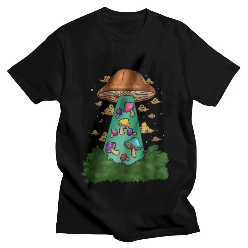 Мужская футболка с НЛО, в стиле Харадзюку, с волшебным грибом, псилоцибин, футболка с коротким рукавом в стиле хип-хоп, Мужская футболка из 100% хлопка, идея для подарка