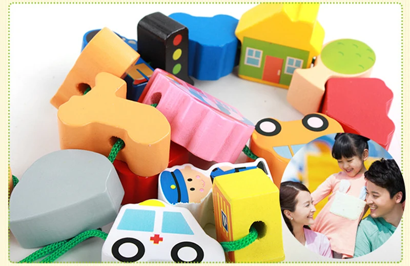 Деревянные игрушки Монтессори, детские игрушки, сделай сам, город, нитка из бусин, шнуровка, головоломка, строительные игрушки для детей, малышей