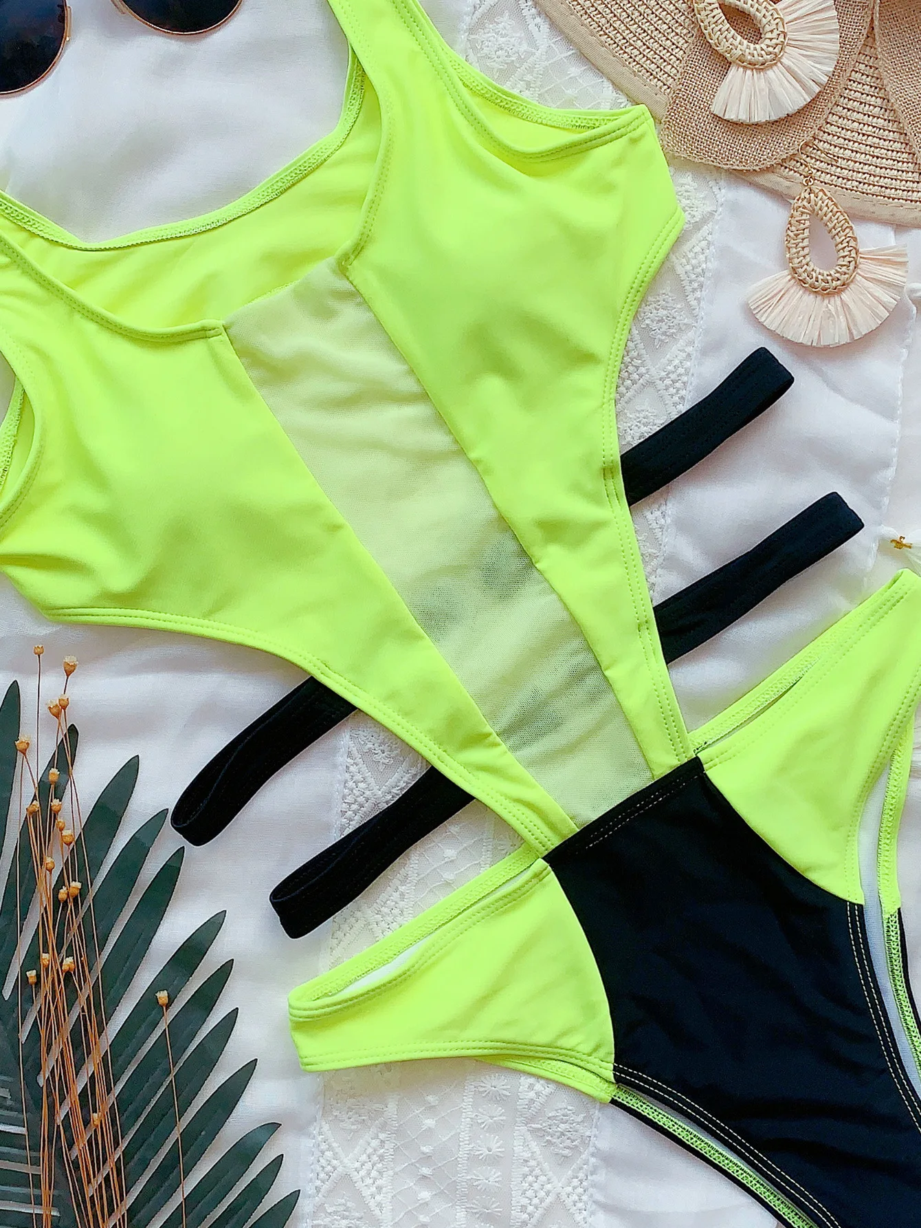 Сексуальное неоново-зеленое бикини 2022, Женский однотонный бандажн...