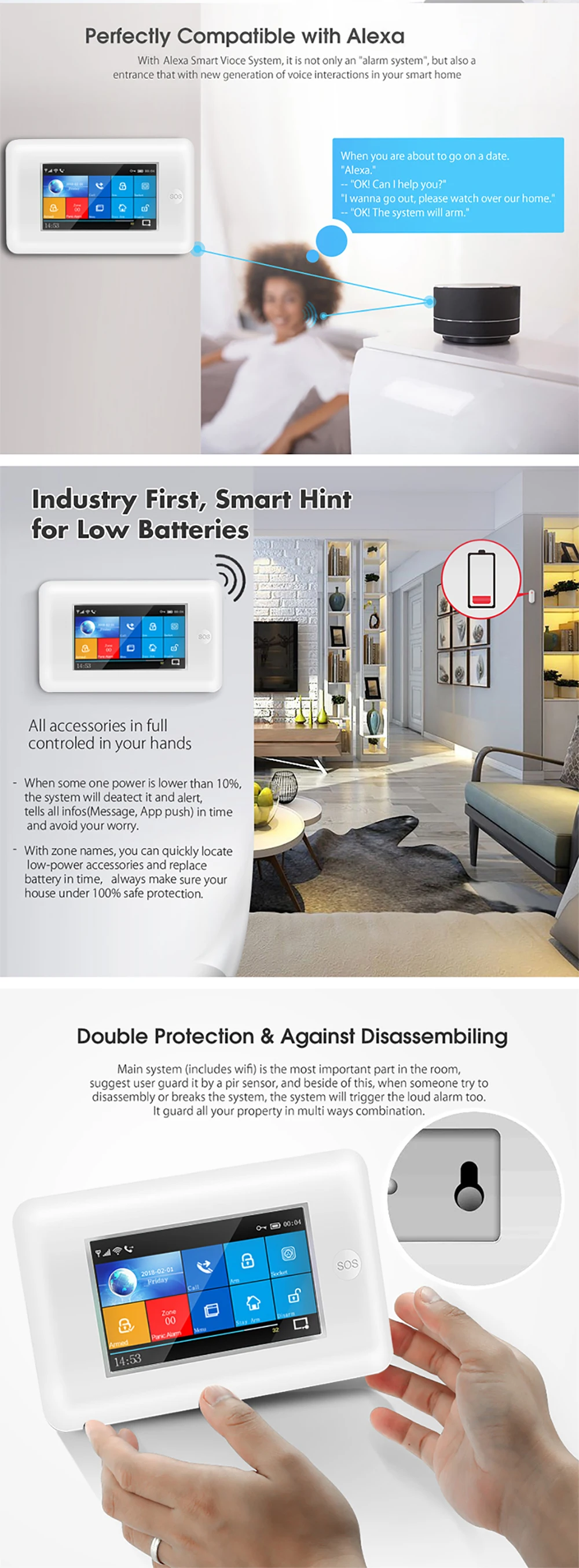 Комплект домашней сигнализации Tuya, Wi-Fi, 433 МГц, с сенсорной клавиатурой