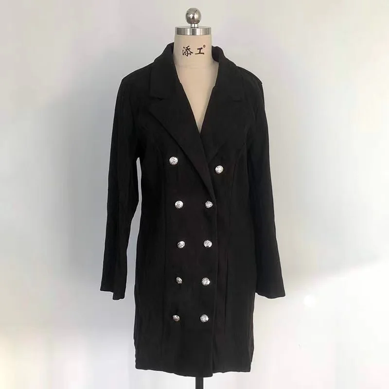Женская двухбортная куртка до колен, однотонная повседневная куртка, Осень-зима 2021