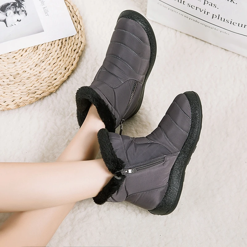Женские Водонепроницаемые ботинки, зимние теплые ботинки с плюшевой подкладкой, 2021, до щиколотки, размера плюс, 43