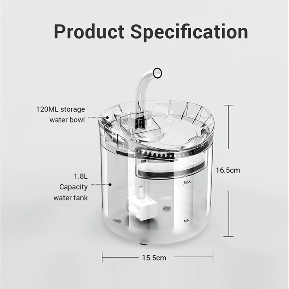 Чистая водаУникальный сменный дизайнерский фильтр эффективно фильтрует волосы, запах и хлор. Следовательно, фонтан может дать чистую воду для домашних животных и уменьшить риск развития болезни. Угольный фильтр помогает удалить запахи и плохой вкус.Дизайнерский насосУникальный Разработанный бесшумный насос разворачивается с индивидуальной присоской, чтобы уменьшить шум до минимального уровня.Высокое качествоФонтан для домашних животных изготовлен из пищевого поликарбоната, экологически чистый, нетоксичный, без запаха и долговечный. Простая БЫСТРОРАЗЪЕМНАЯ структура предназначена для легкого удаления и очистки.Емкость 2лНе нужно часто пополнять воду, и она может удовлетворить питьевые потребности кошек, собак, птиц и других домашних животных различных размеров. Не нужно беспокоиться о том, что ваши питомцы не получают достаточно свежего напитка, когда вы идете на работу.2 режима потока воды (режим крана/режим фонтана), обеспечивая чистую проточную воду, сделайте ваших питомцев счастливее и здоровее.ВизуальныйПолностью прозрачный дизайн. Питание от USB кабеля. Безопасная, гигиеническая, удобная верхняя полка для посудомоечной машины.Спецификация продукта:Материал: пищевой ПКЦвет изделия: полностью прозрачный (Позвольте вашим питомцам четко видеть воду)Максимальная емкость: 2 литра (67 унций)Размер изделия: прибл. 15.5x15.5x16.5 см/6,1x6,1x6,5 дюймов (Д * Ш * В)Вес изделия: 600 гВремя замены фильтра:1. Угольный фильтр лучше заменять каждый месяц, чтобы достичь хорошего эффекта фильтрации.2. В режиме датчика угольный фильтр лучше заменять каждые 2 месяца.3. Лучше заказать дополнительно 2-3 шт. угольный фильтр для ваших питомцев!Дружеские советы:Пожалуйста, Регулярно очищайте насос, чтобы продлить срок службы.Теплые Примечания:О датчике движения, который может адсорбироваться только на глянцевой и гладкой поверхности, матовая стена или пол не отвечают условиям. (его можно адсорбировать к корпусу фонтана)