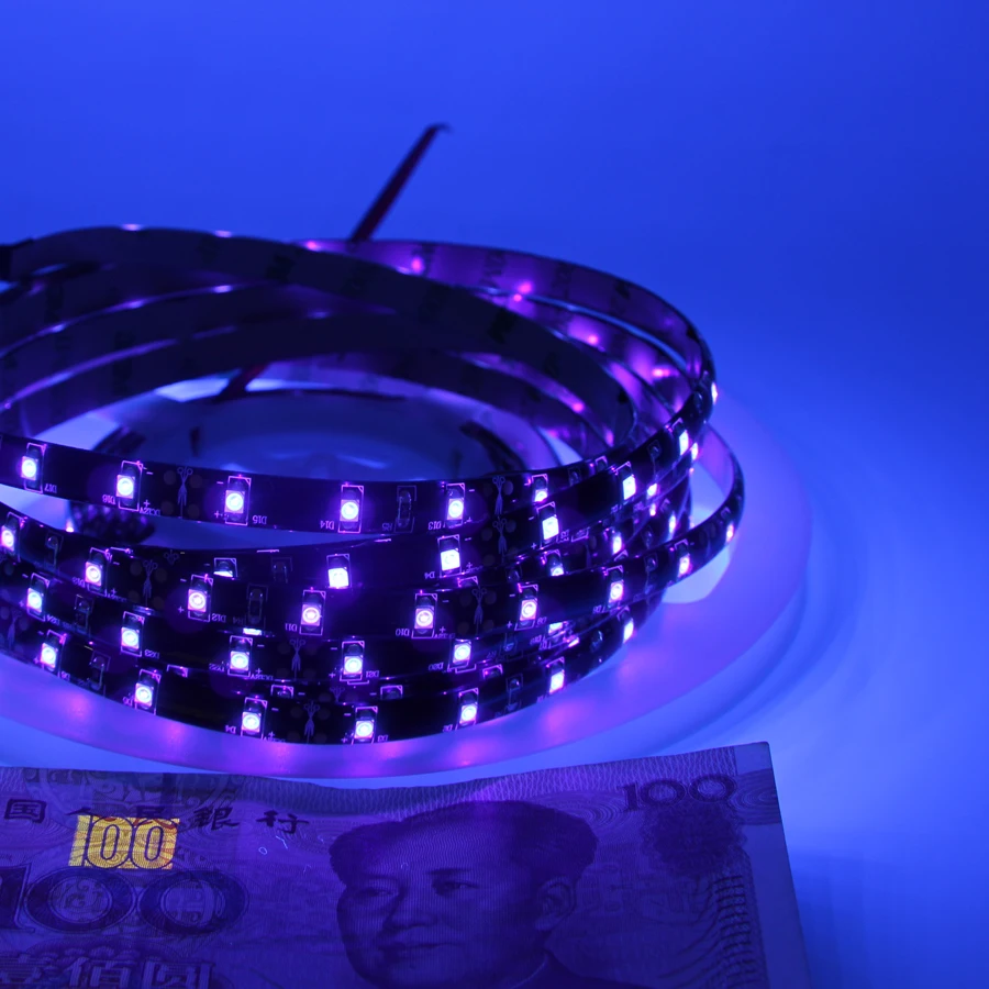 Сверхяркий 3528 SMD УФ-светодиодный ультрафиолетовый, высокая интенсивность и reliabilitВодонепроницаемая гибкая светодиодная лента60 светодиодов/м или 120 светодиодов/м УФ-ультрафиолетовые светодиоды на метрСамоклеящаяся задняя сторона с двусторонней клейкой лентойБесплатное обслуживание, простая установкаКаждые 3-светодиодный cutable, не повреждая остаток полосыГибкая лента для изгибаУльтра-яркий, но работает при низкой температуре
