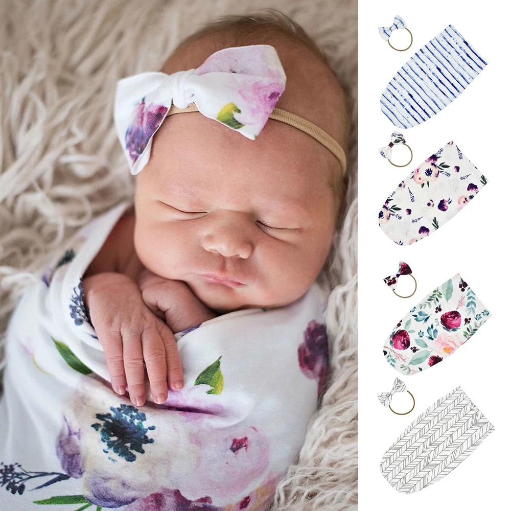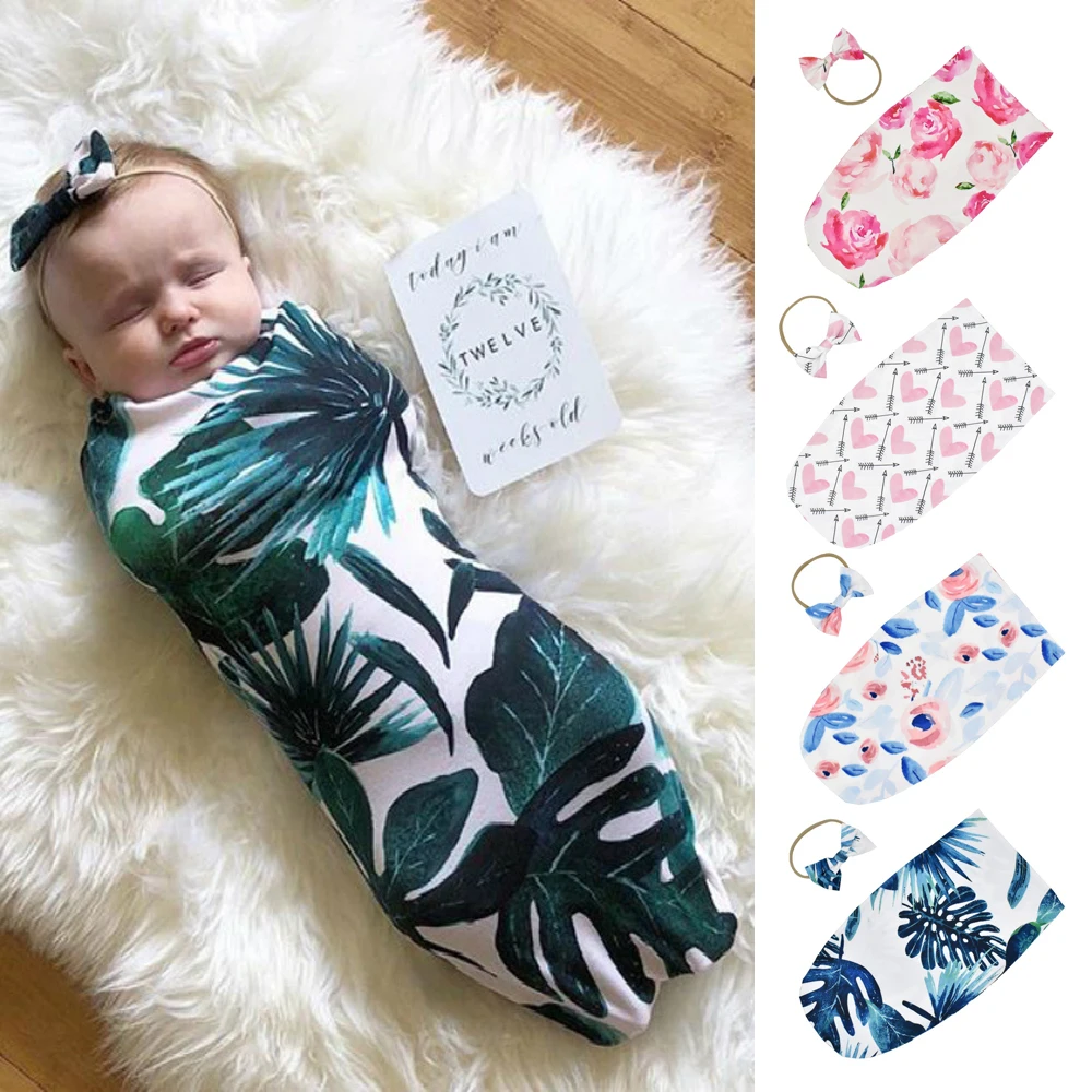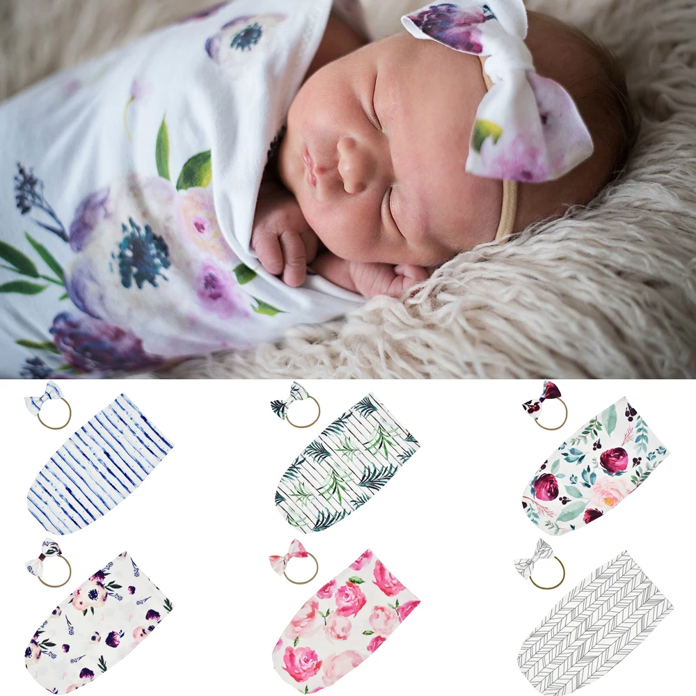 Спальный мешок с принтом для новорожденных, кокон с бантом на голову, пеленка для младенцев, для мальчиков и девочек, одеяло для сна для младенцев
