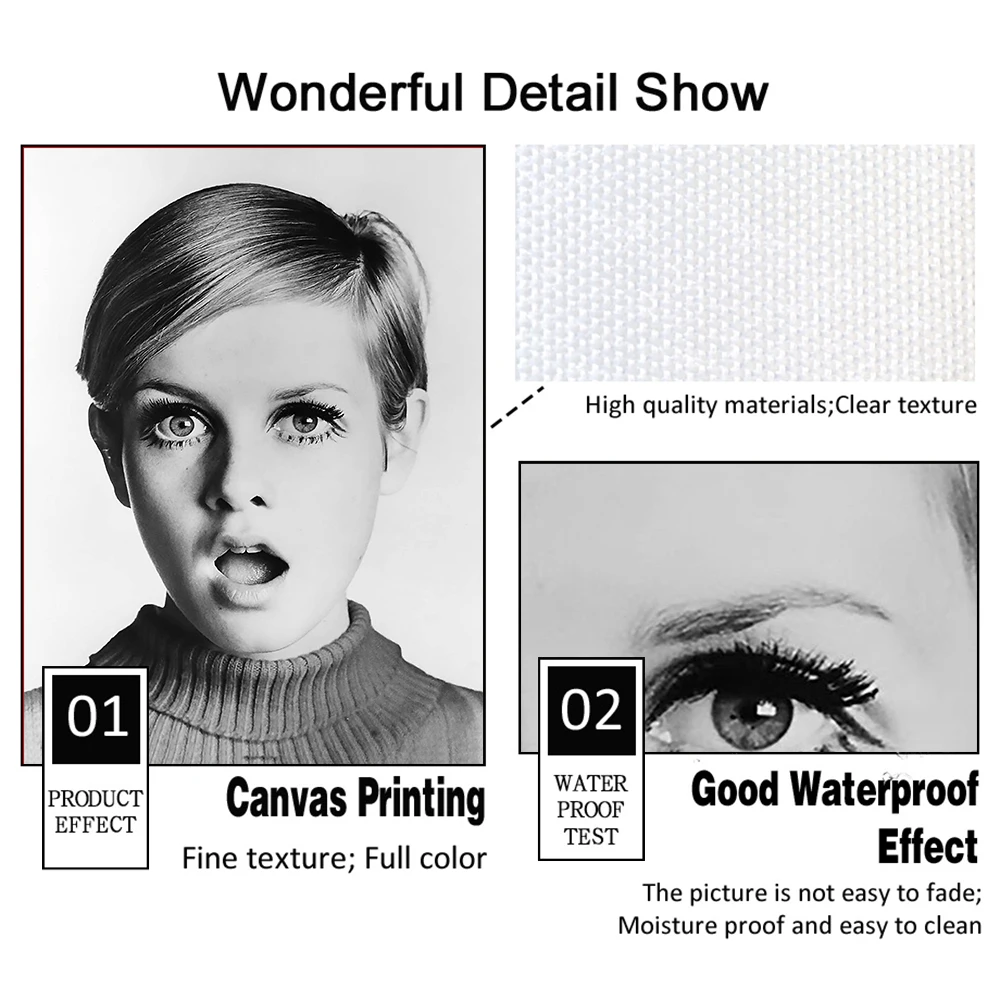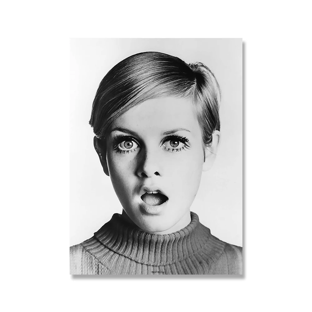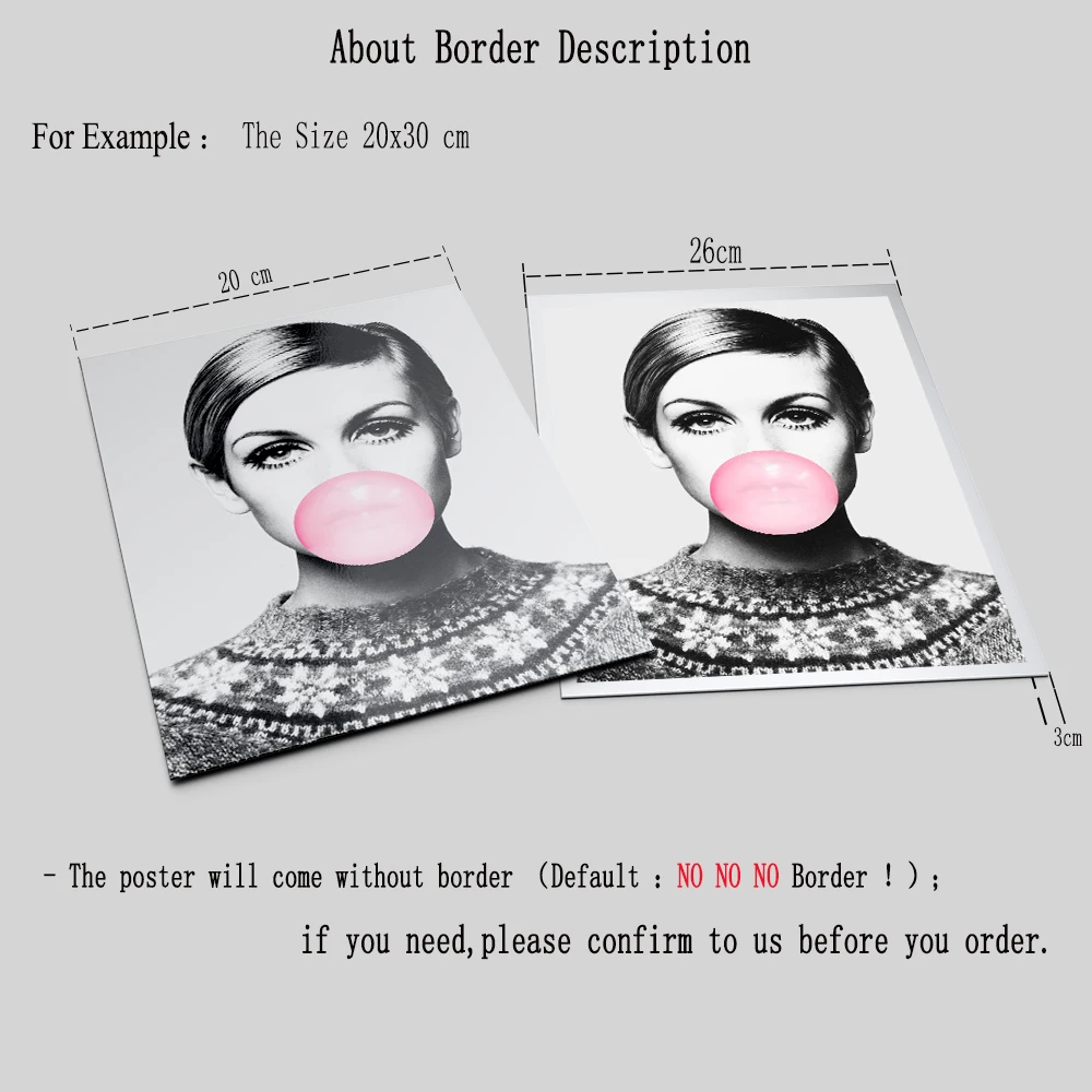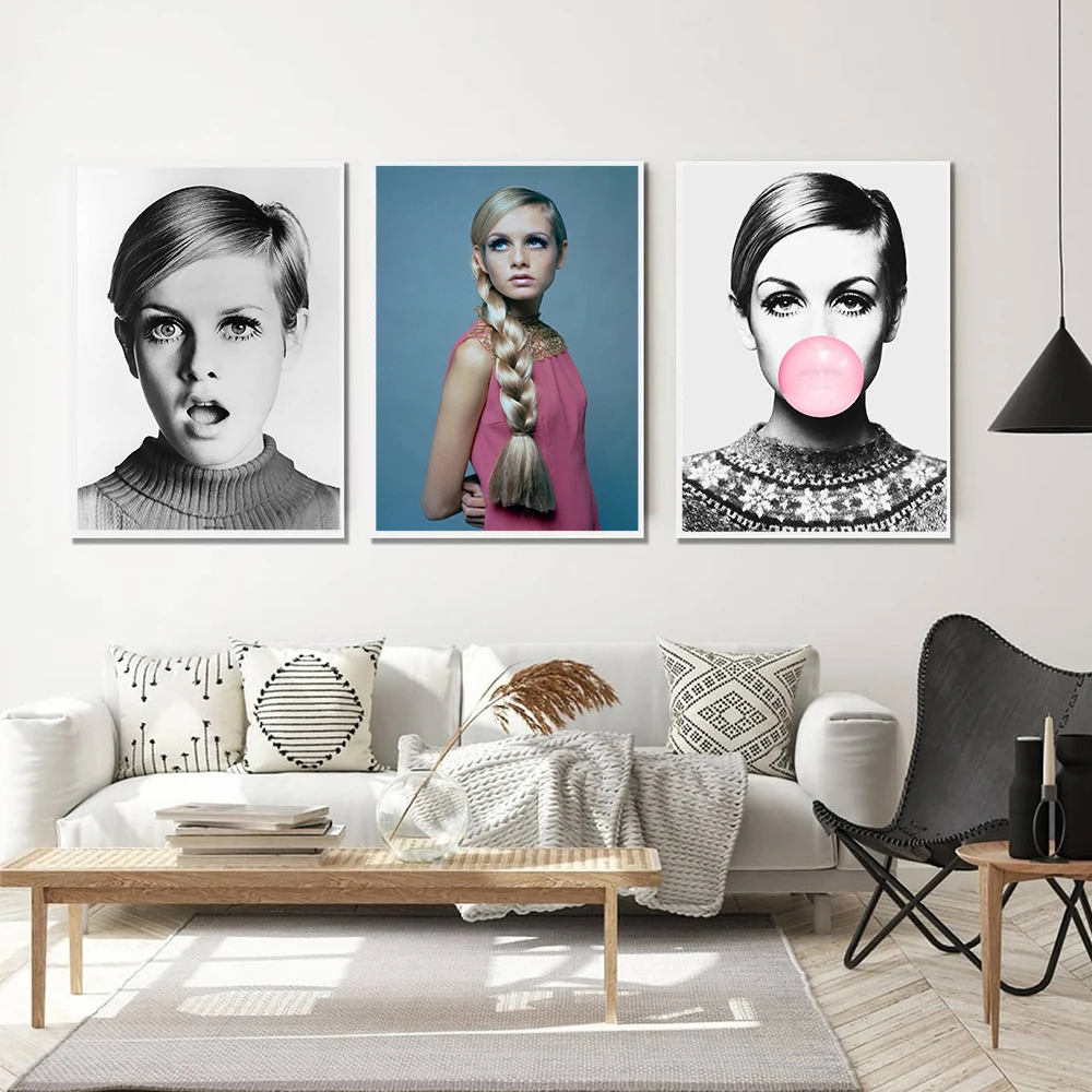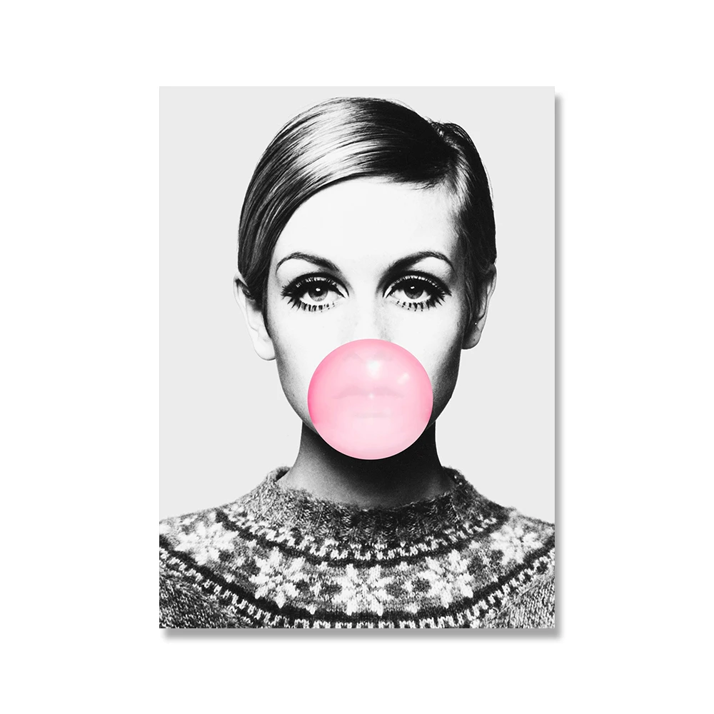 Черно-белый Твигги розовый пузырь жвачка настенное Искусство Холст модный глэм идол плакаты-портреты и принты картина картины Домашний декор