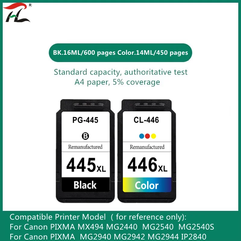 Бренд: Yi Le CaiСовместимые модели: PG445 CL446Цвет: черный, три цвета sЕмкость: Bk-16ml, три цвета-14 млКоличество страниц: 600 страниц в черном цвете, 450 страниц в трех цветах (формат А4, 5% покрытия)Посылка 1:1 шт. PG445 Черный чернильный картриджПосылка 2:1 шт. цветной чернильный картридж CL446Посылка 3:1 шт. PG445 Черный чернильный картридж1 шт. цветной чернильный картридж CL446Если ваш оригинальный или предыдущий чернильный картридж 445XL/446XL (или PG445/CL446), наш продукт совместим с вашим принтером. Если ваш оригинальный или предыдущий чернильный картридж не 445XL/446XL (или PG445/CL446), наш продукт не подходит для вашего принтера. Если у вас есть какие-либо вопросы, пожалуйста, свяжитесь с нами.Совместимая модель принтера (только для справки): для Canon PIXMA MX494 MG2440 MG2540 MG2540SCanon PIXMA MG2940 MG2942 MG2944 IP2840