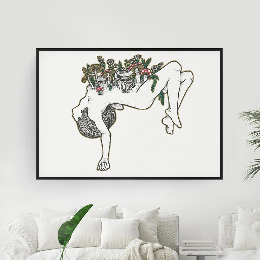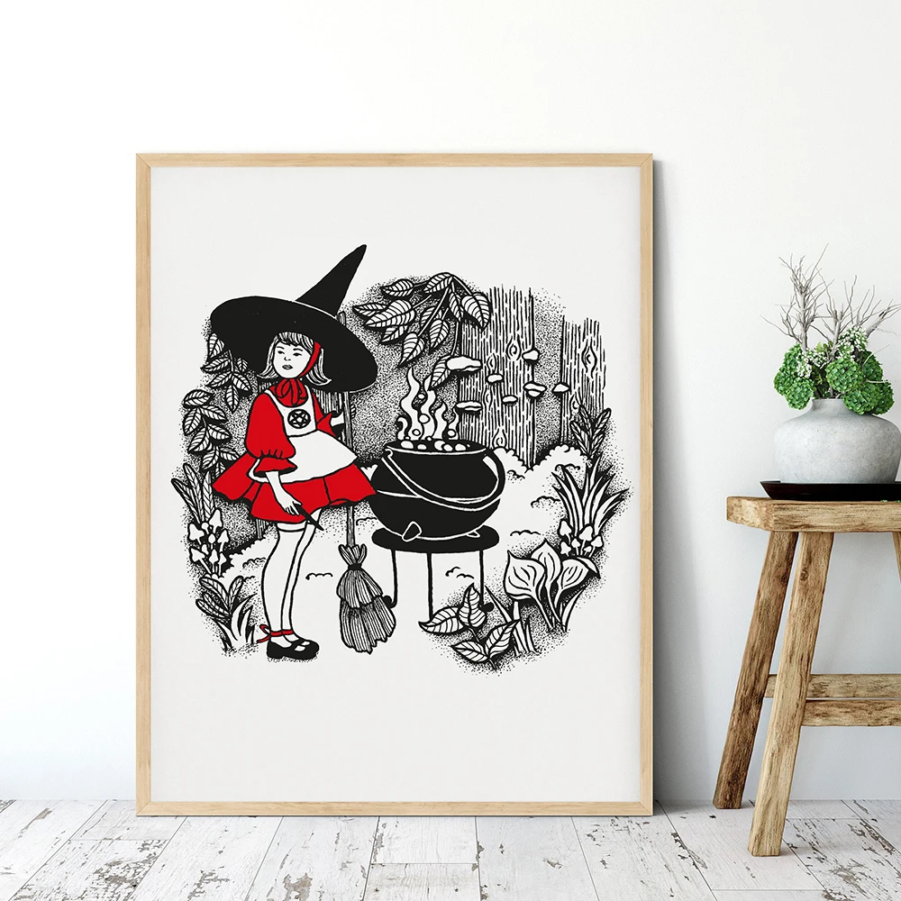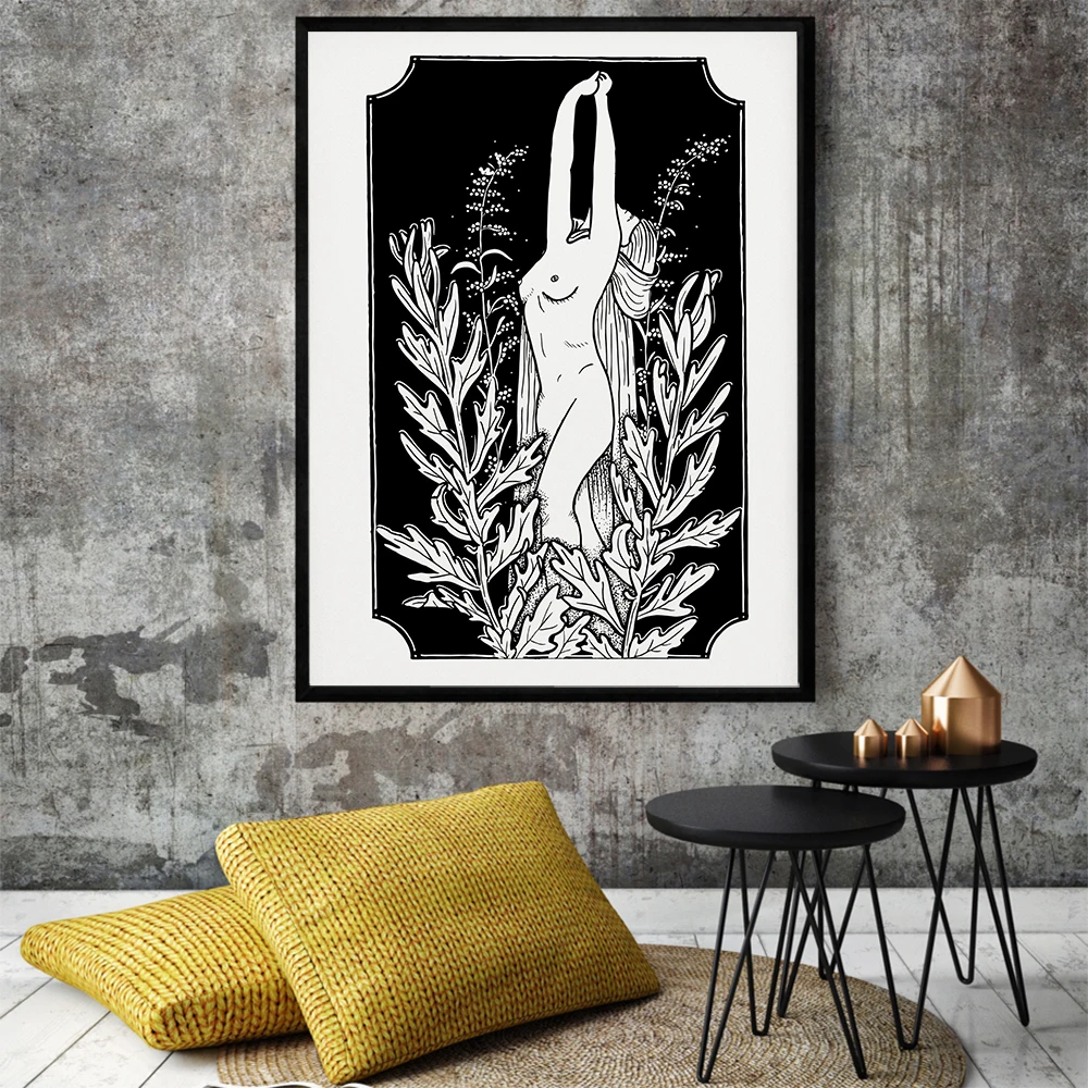 Винтажный постер ведьмы, черно-белый, языческий, Обнаженная девушка, ведьма, холст, живопись, Готическая стена, Художественная печать, картина для гостиной, домашний декор