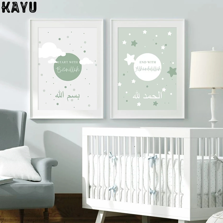 Мусульманская зеленая звезда, мультяшный постер для детской комнаты, Картина на холсте, Художественная печать, картина, интерьер детской комнаты, домашний декор