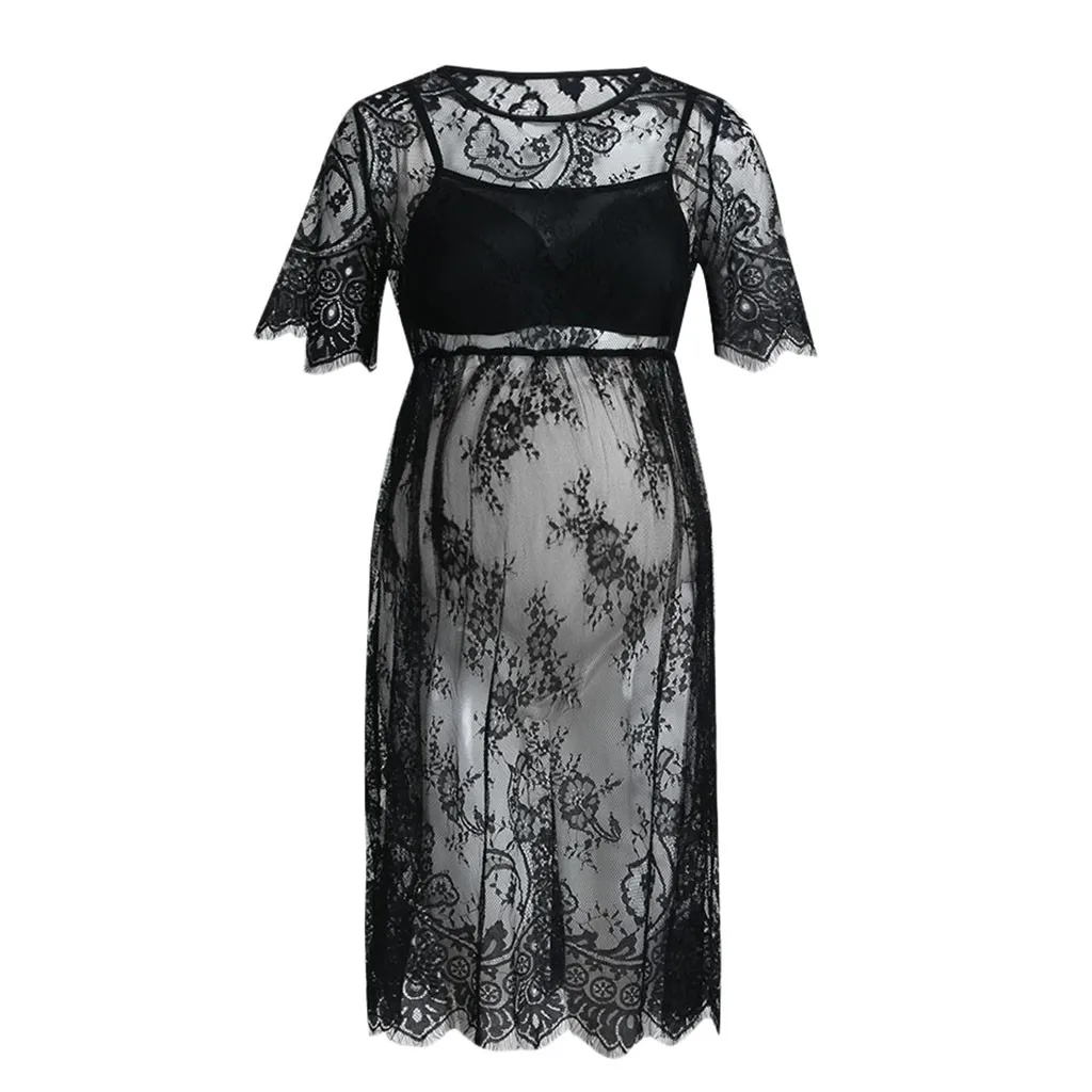 Платья для беременных, летние, прозрачные, кружевные, с коротким ру...