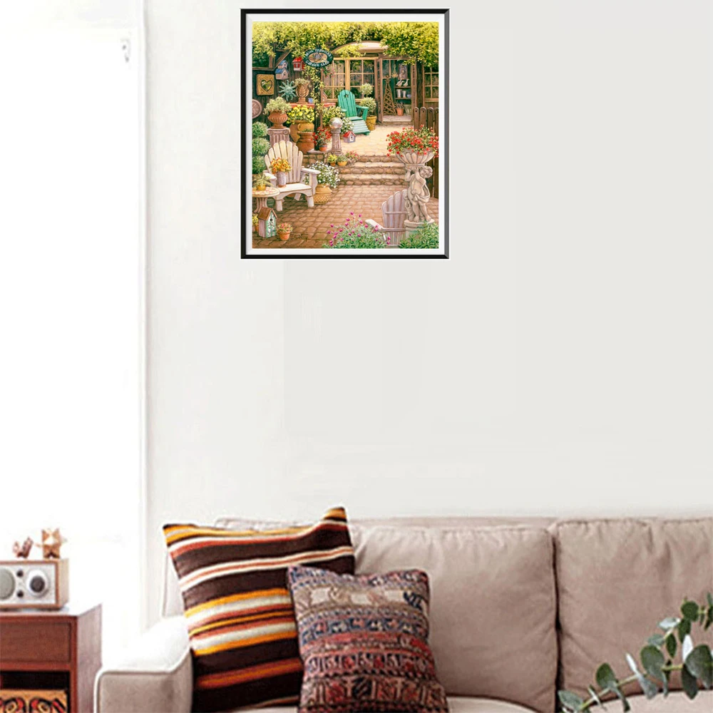 Pintura de diamantes 5D y bordado de flores de paisaje y punto de c...