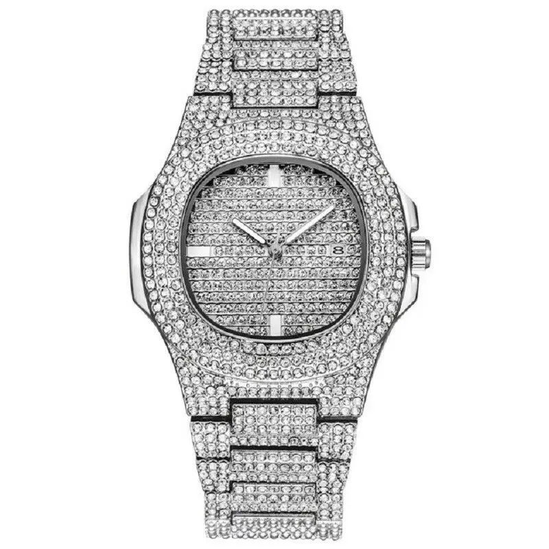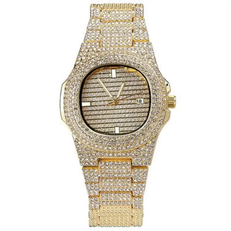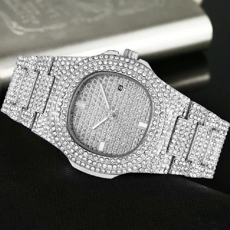Часы наручные мужские кварцевые со стразами, модные роскошные спортивные, в стиле хип-хоп