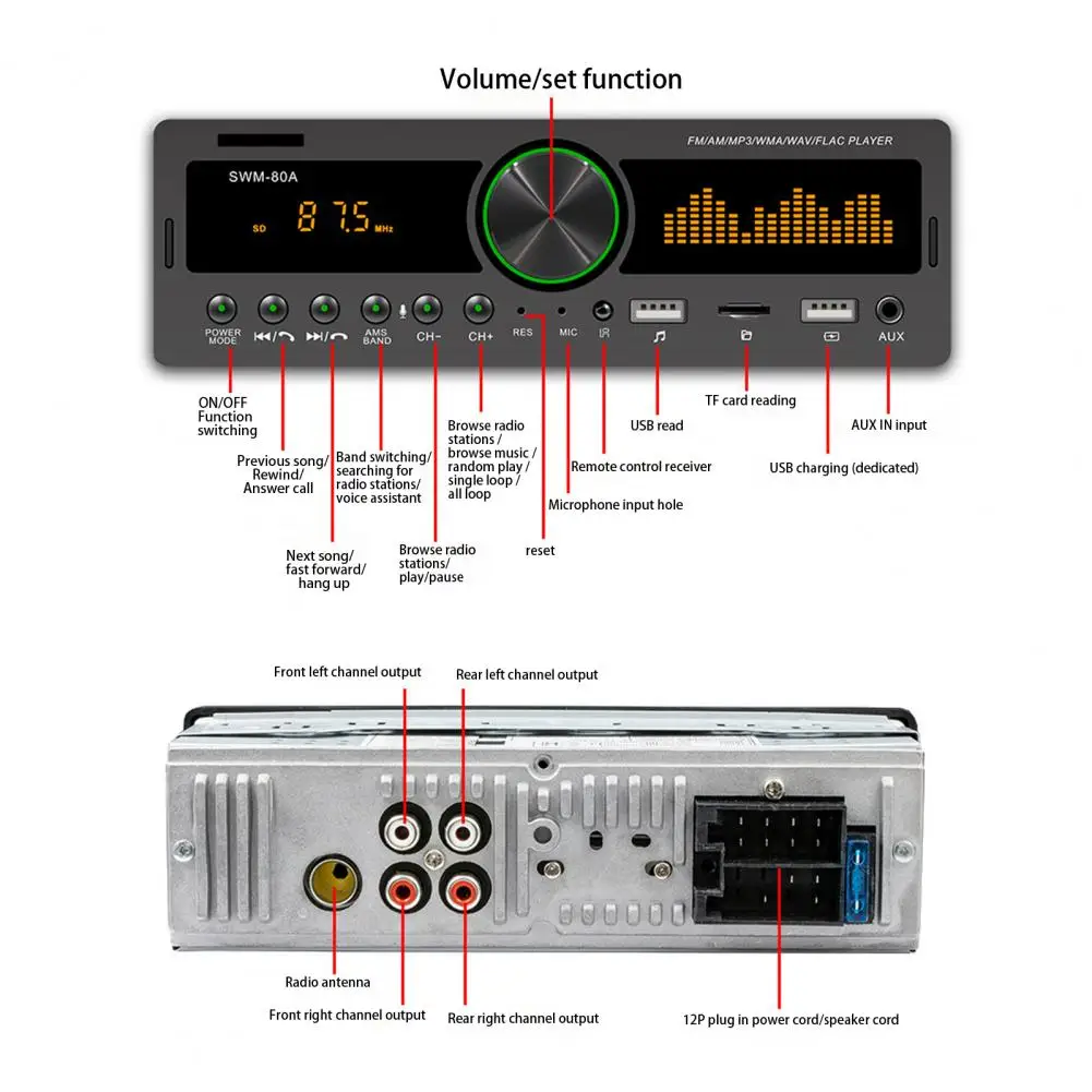 SWM-80A надежный автомобильный стереопроигрыватель, двойной USB AUX вход, цветной свет, многофункциональный MP3-плеер, аудио-радиоприемник для автомобиля
