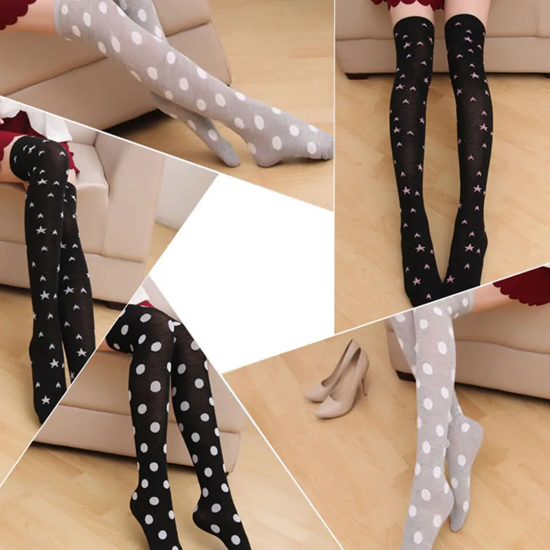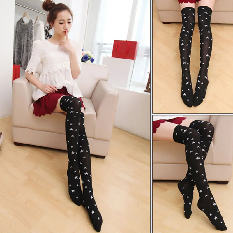 Женские чулки, носки, звезды, круг, выше колена, хлопковые, сексуал...