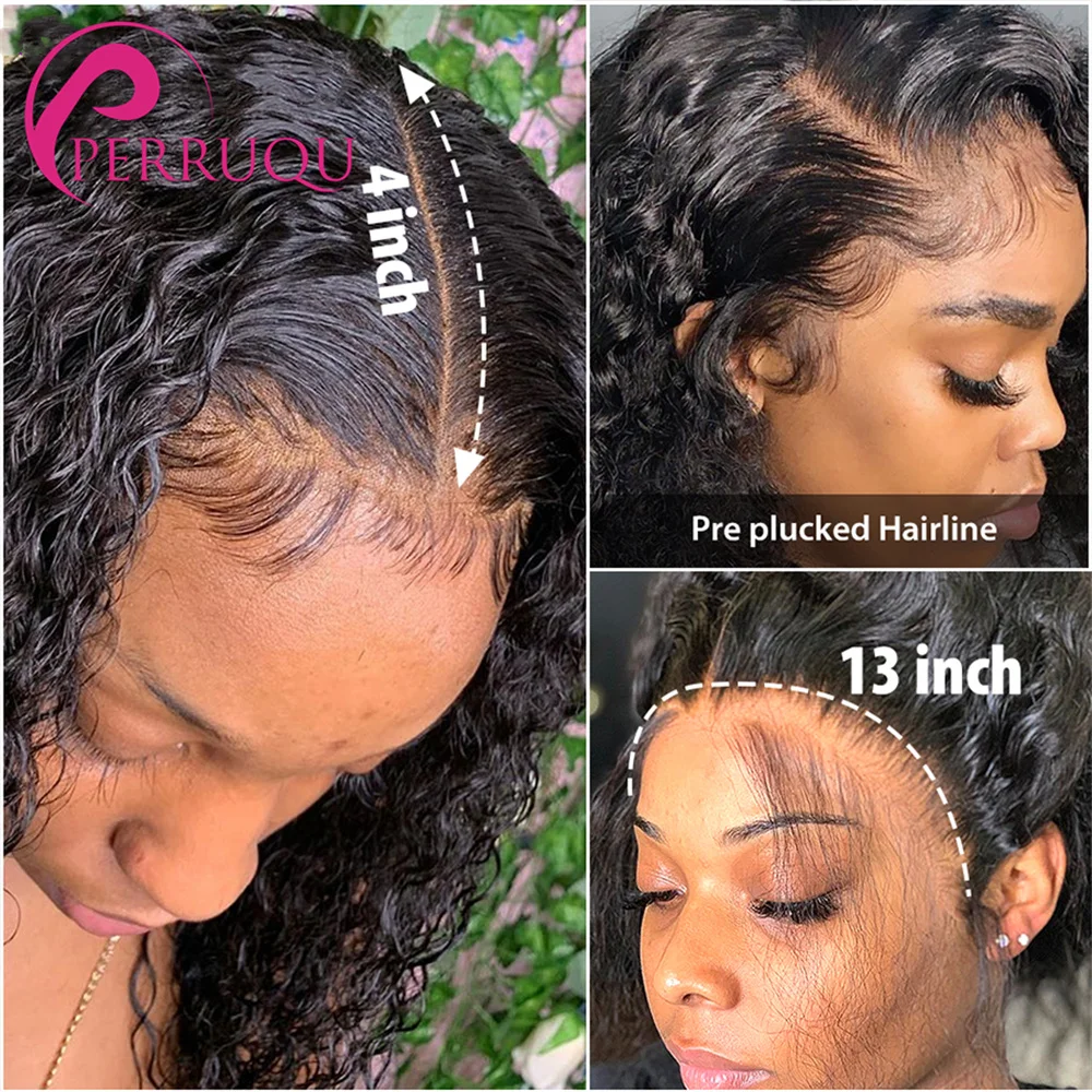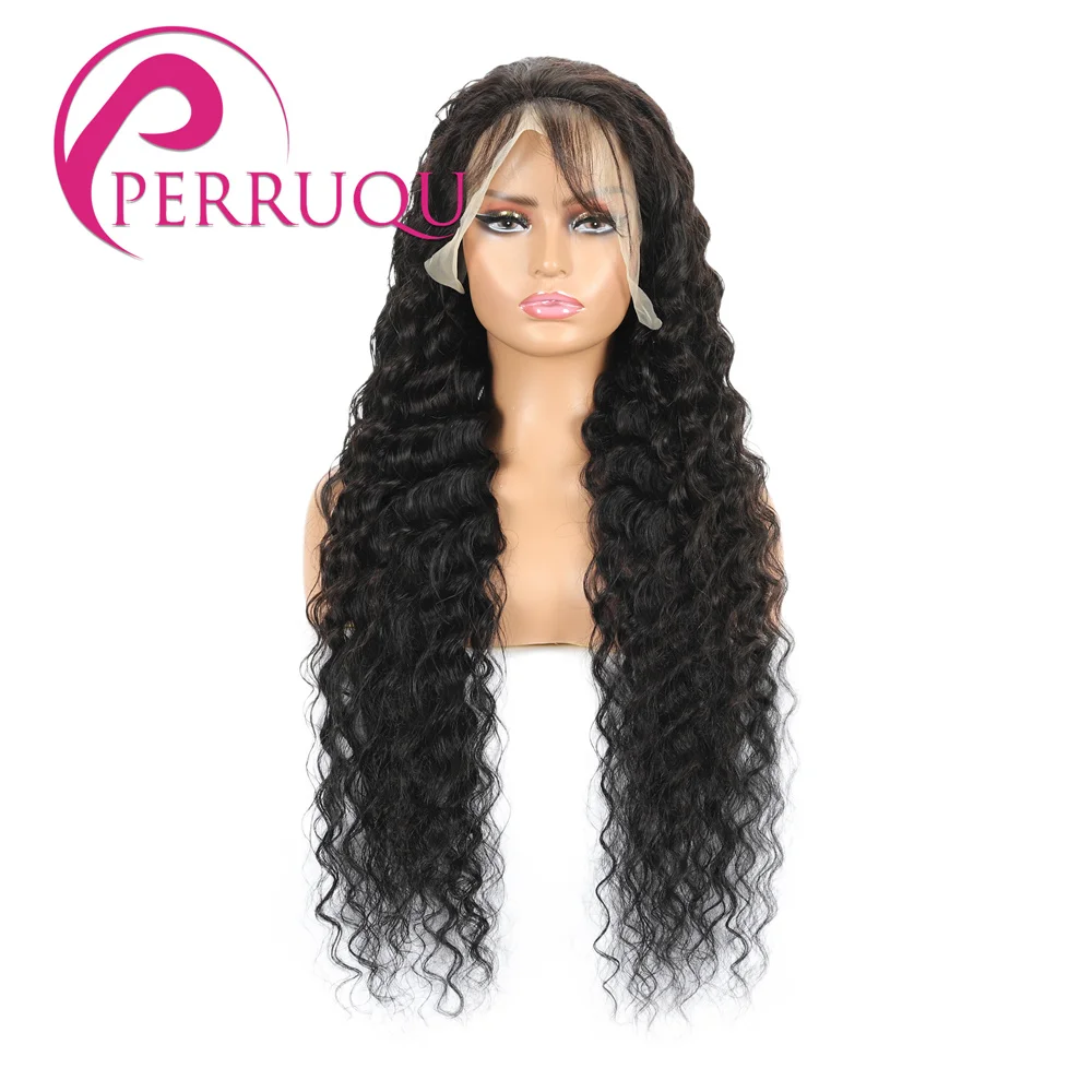 Парик из натуральных человеческих волос с глубокой волной, бразильские кудрявые, прозрачные, на сетке, передний, al парик для черных женщин, предварительно выщипанный, 13X 4, парик на сетке спереди
