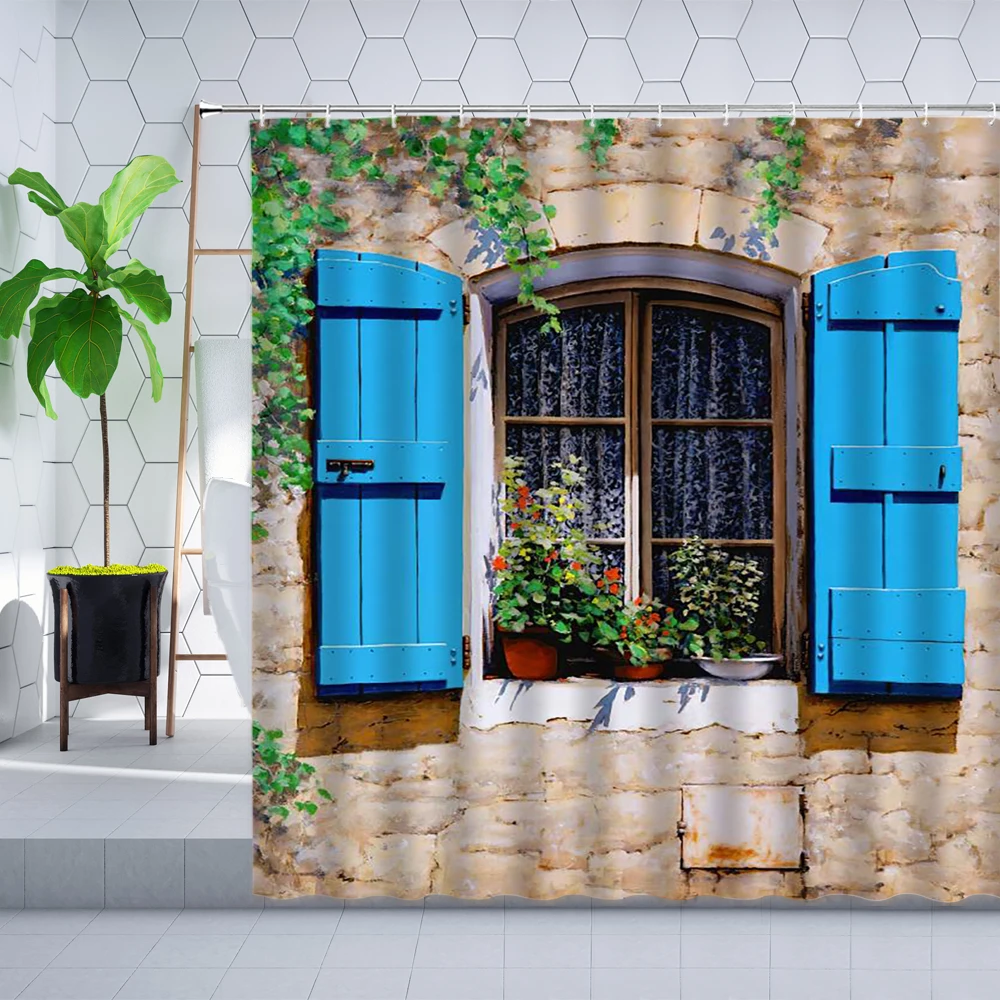 Занавеска для душа в стиле ретро уличный пейзаж, садовый занавес с ...