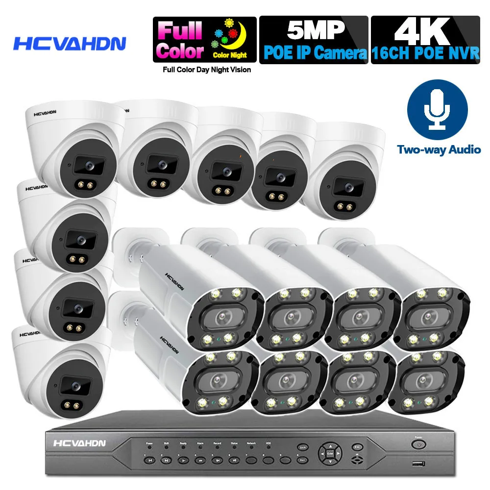 Камера видеонаблюдения POE, 16 каналов, NVR, 4K, 5 Мп