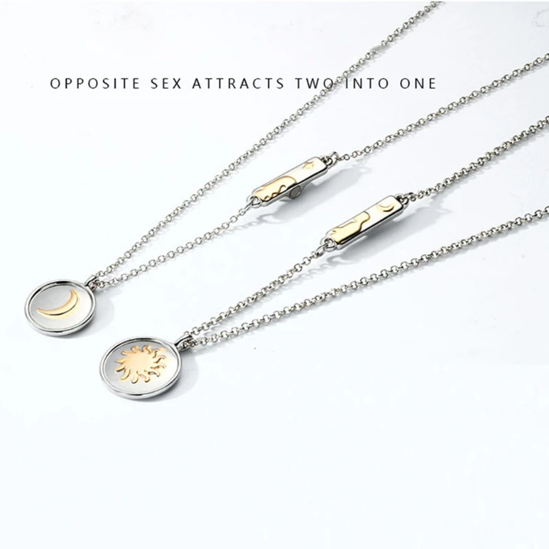 Магнитное ожерелье для пары, 2 шт., подвеска в виде солнца, Луны, звезды, на большие расстояния, Очаровательное ожерелье, подарок на день Святого Валентина