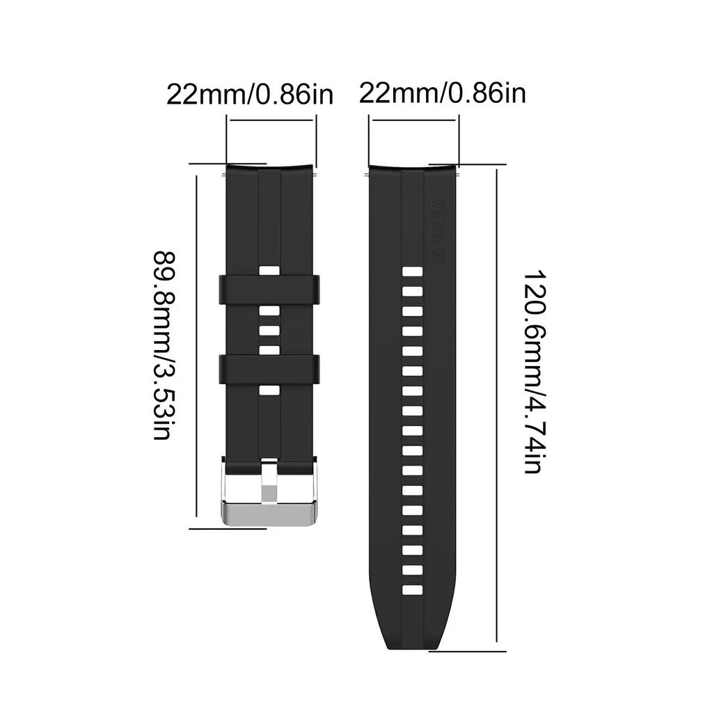 Особенности: 1. Ремешок из силикагеля с более прочной и долговечной, хорошо изготовленной версией, мягкий, удобный. 2. Отличное покрытие и уникальный человеческий эстетический прикосновение, пригодный для переработки и экологически чистый. 3. Легко зафиксировать часы и снять одну кнопку. Вы можете легко менять часы назад и вперед другим цветом или другим ремешком. Описание: Это качественный ремешок, мягкий, удобный, прочный и долговечный в повседневном использовании. Характеристики: Материал: силикон Способ ношения: ремешок на запястье Материал пряжки: нержавеющая сталь Размер: 22 мм, 20 мм (опционально) Подходит: дляWatch3/gt2/GT3/ 2PRO/3 PRO Посылка 1 ремешок