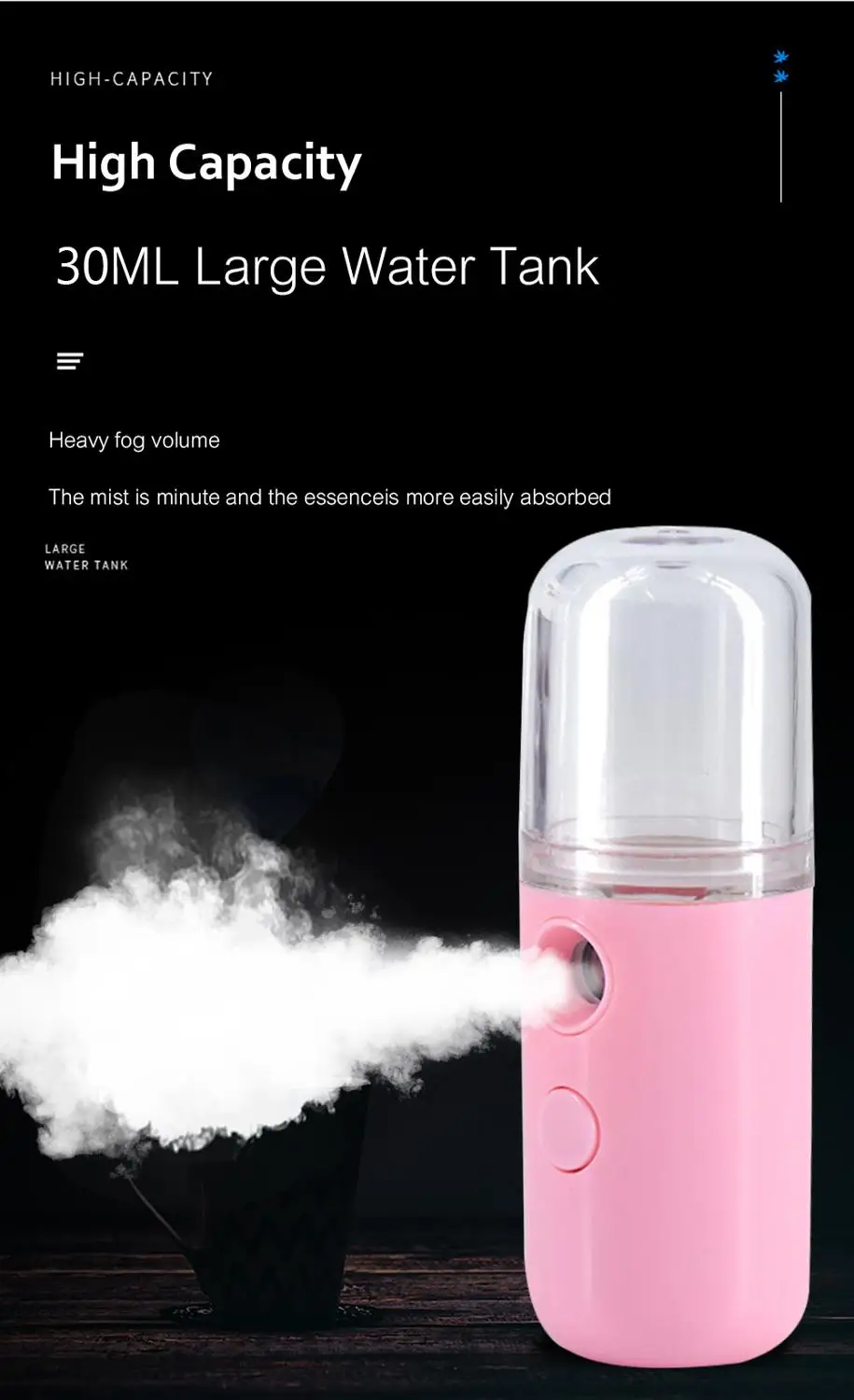 Этот нано-распылитель воды с большим резервуаром для воды может проникать глубоко в кожу и оживлять кожу.