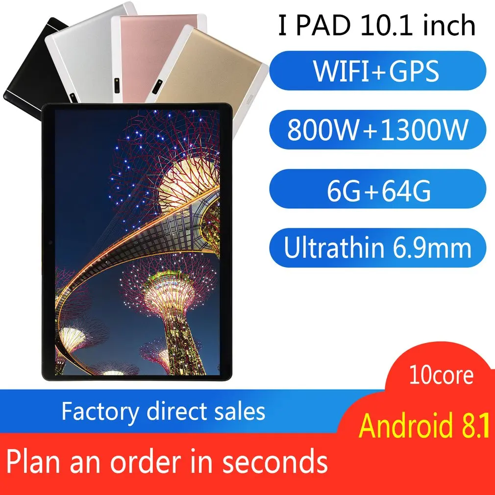 Планшет Android 10,1, 8,10 дюйма, 6 + 64 ГБ, Wi-Fi, GPS, 10,1