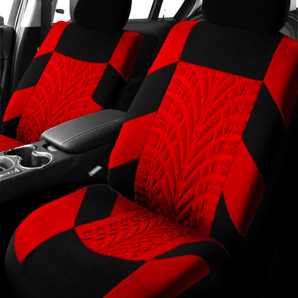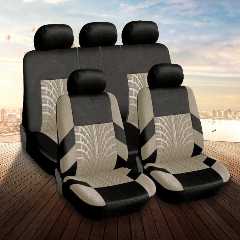 Набор чехлов для автомобильных сидений с вышивкой, универсальные, подходят для большинства автомобилей, с деталями дорожек, Стайлинг, защита для автомобильных сидений