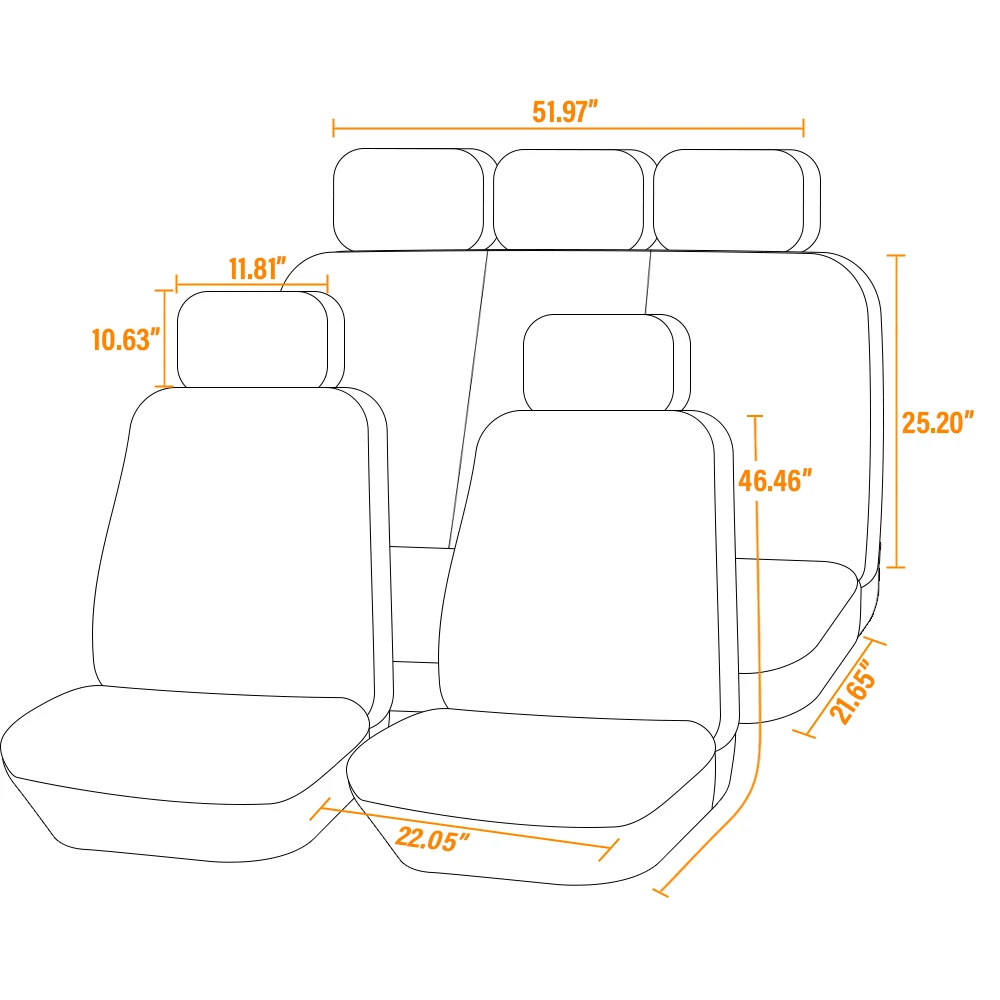 Rear bench covers have three zippersDesigned to fit 50/50, 40/60, 60/40, or 20/40/20 split rear benches