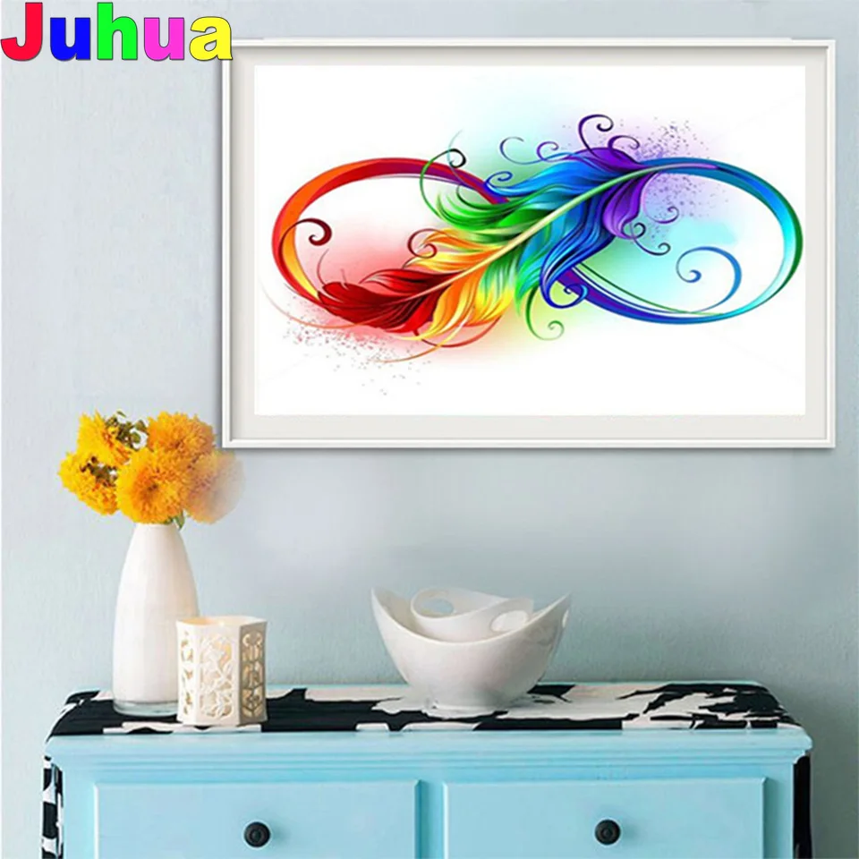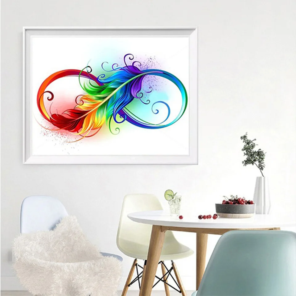 Радужное перо 5D алмазная живопись своими руками полная квадратнаякруглая Алмазная мозаика искусство абстрактная Алмазная вышивка подарок домашний нордический Декор