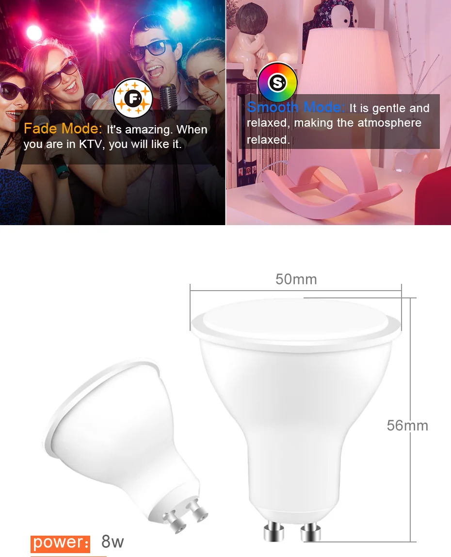 8W GU10 RGB LED bulbLED Bulb with Remote Control Dimmer