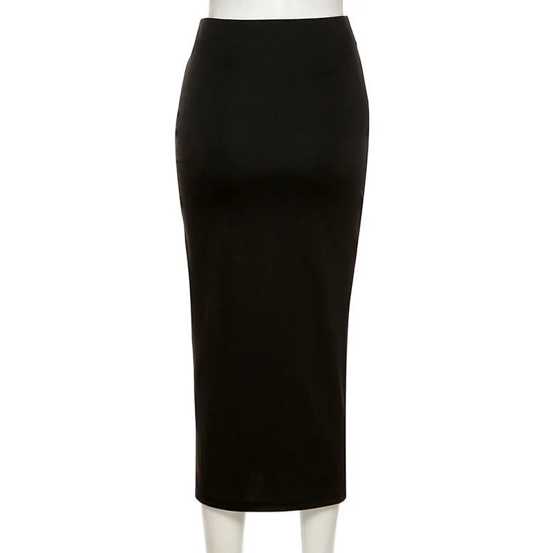 Женская юбка с разрезом, черная Повседневная Облегающая Юбка-миди с...