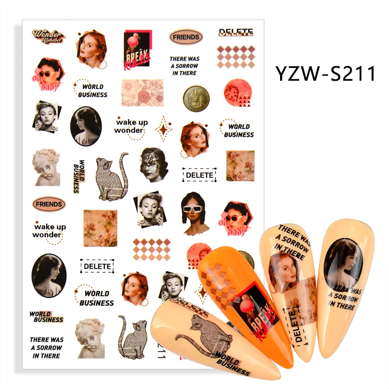Абстрактные наклейки для ногтей с изображением лица леди, слайдеры ...