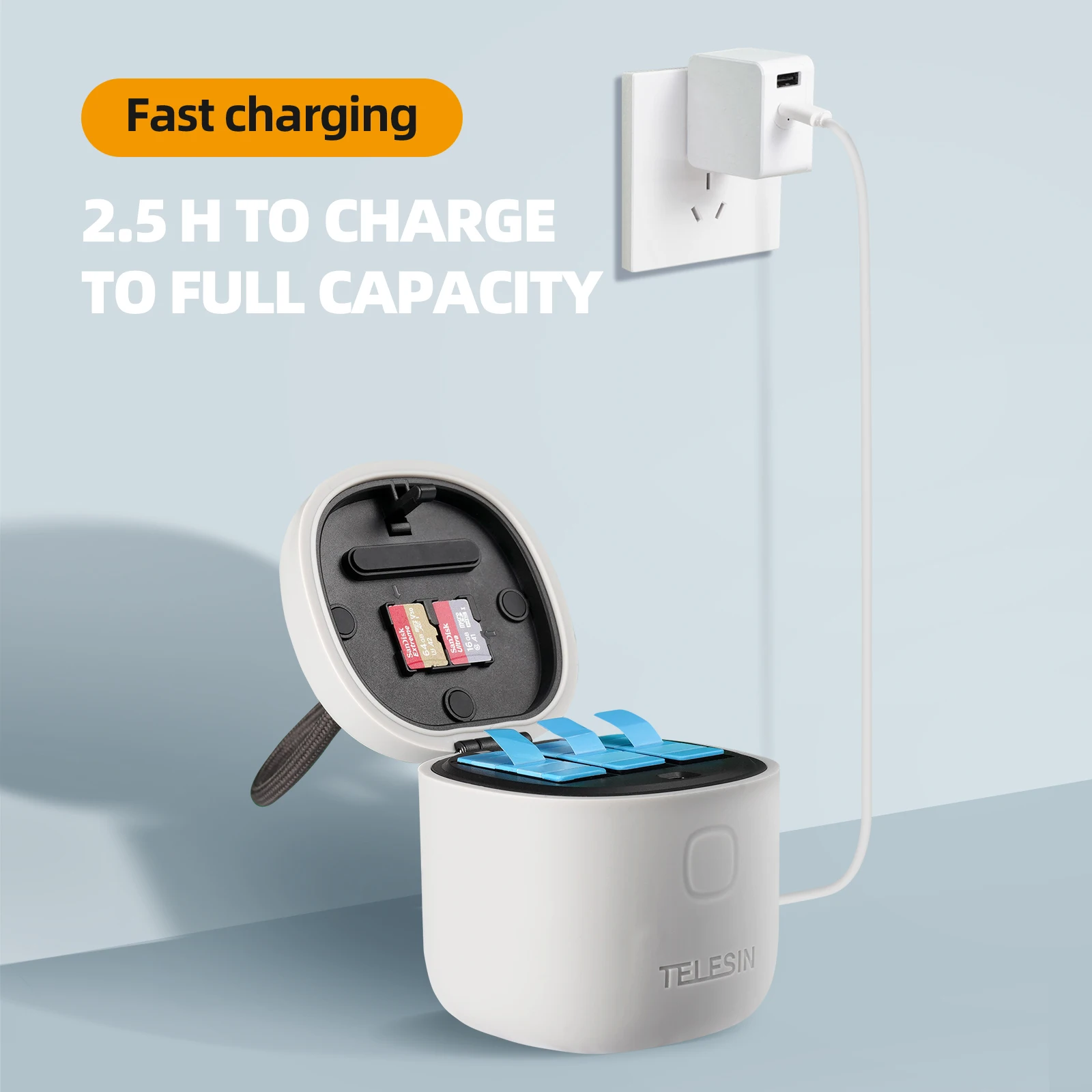 TELESIN 3 упаковки 1750 мАч аккумулятор для GoPro 9 зарядное устройство 3 способа TF кардридер зарядное устройство для хранения черных аксессуаров