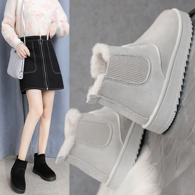 Женские зимние ботинки 2021 на толстой подошве зимние теплые меховые плюшевые женские ботильоны модные короткие ботинки женская хлопковая обувь большого размера
