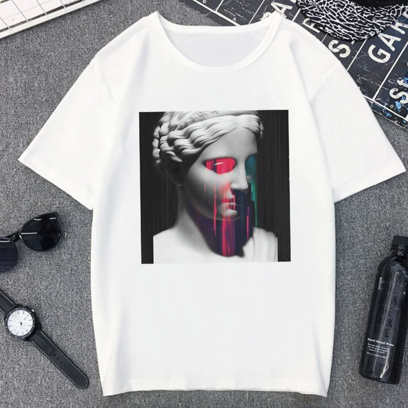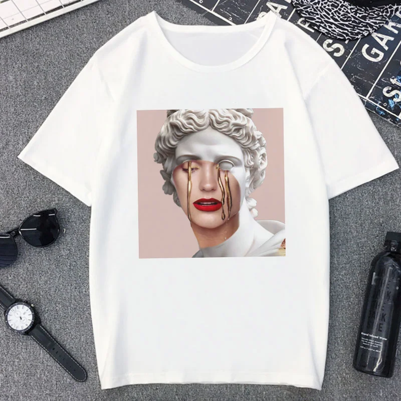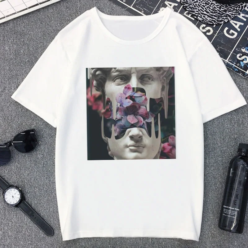 Футболка женская с изображением гигантской статуи Давида, смешная уличная одежда в стиле Харадзюку, повседневный Белый Топ, на лето