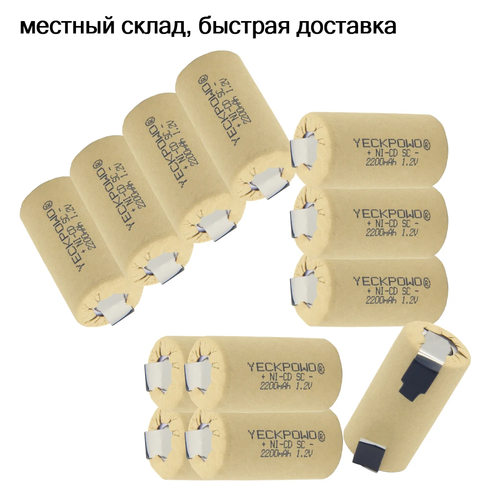 Yeckpowo SC батарея 2200mah 1,2 v SUBC батарея NICD перезаряжаемые ...