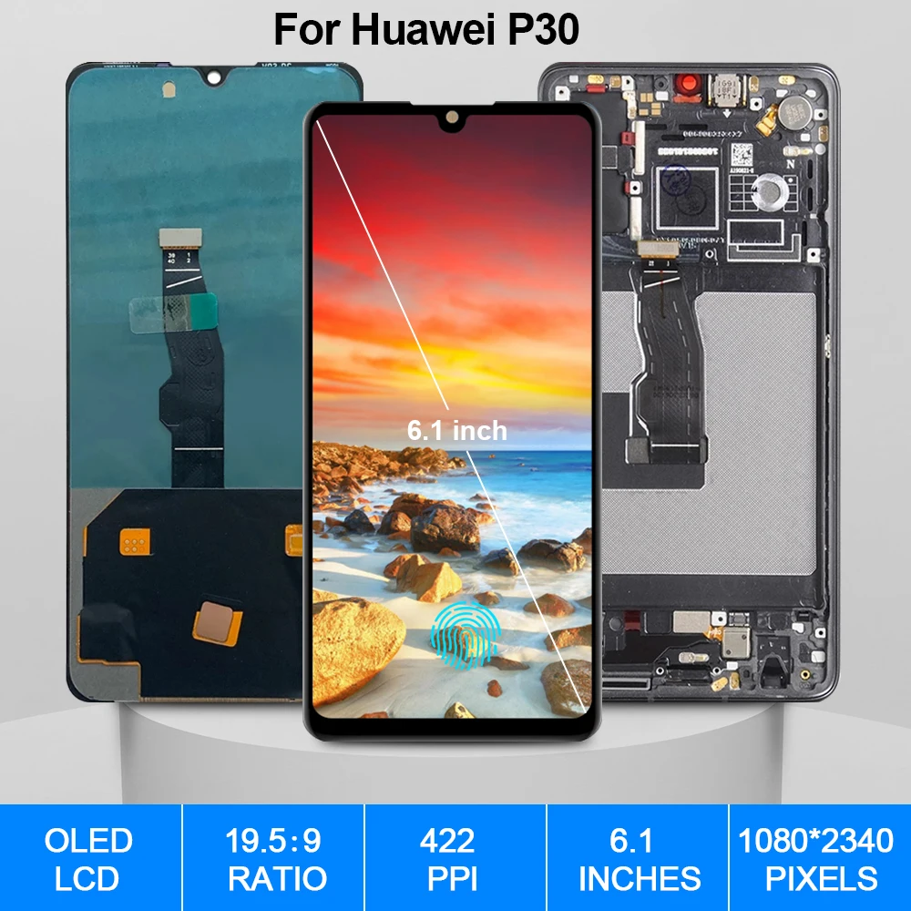 * Оригинальный тест машины, высококачественный ЖК-экран.* Подходит для: Huawei P30* Посылка: 1 шт. ЖК-дисплея + 1 набор инструментов (подарок) + 1 шт. клея (подарок).* Цвет экрана: черный* Цвет оправы: черный/небесно-голубой/серебристый/красный/синий Аврора* Вариант: без рамки/с рамкой.* Быстрая доставка: в течение 24 часов.* Совместимые модели: ELE-L29, ELE-L09, ELE-AL00, ELE-TL00, ELE-L04
