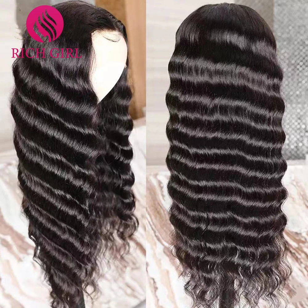 Парики женские из натуральных человеческих волос с глубокой волной, 28-30 дюймов