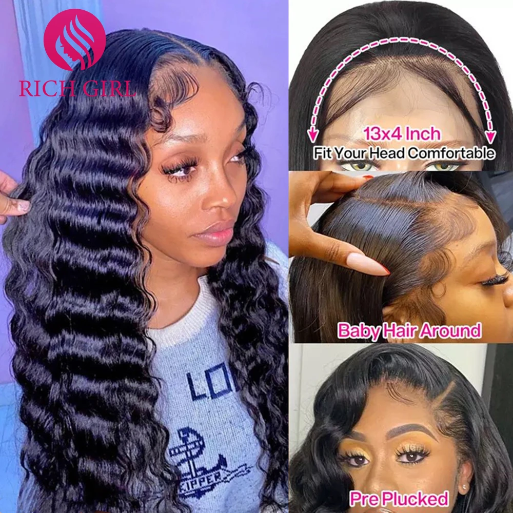 30 34 дюймов глубокая волна фронтальный парик кудрявые человеческие...