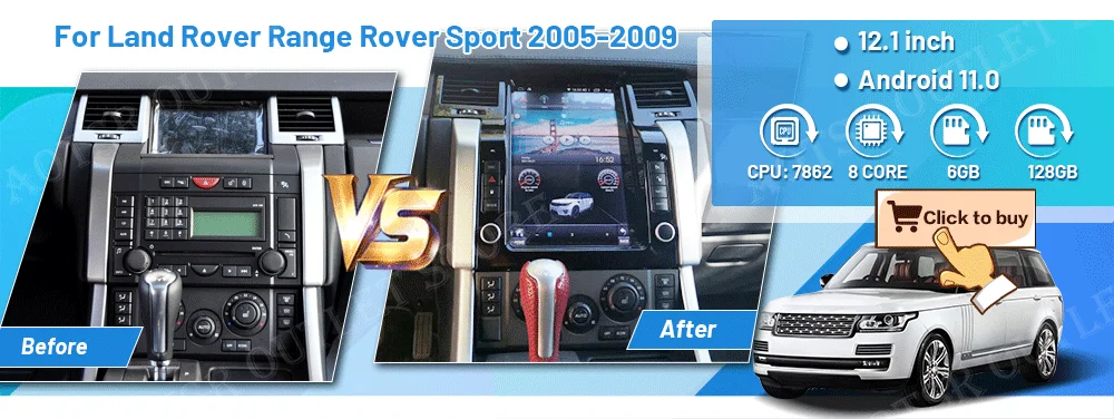 Автомагнитола 2DIN на Android 11, мультимедийный проигрыватель с радио и GPS для Range Rover Sport 12,1-2005, 2009 дюйма