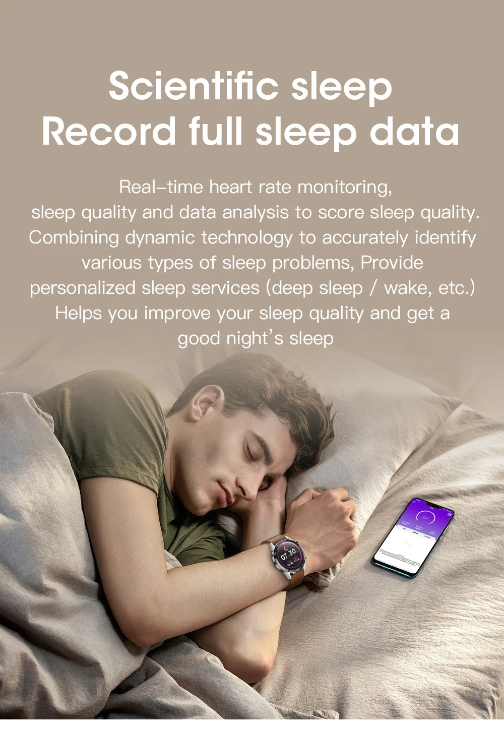 Мониторинг сердечного ритма в реальном времени, качество сна и анализ данных для оценки качества сна. Сочетание динамической технологии для точного определения различных типов проблем со сном, предоставление персонализированных услуг по сну (глубокий сон/Пробуждение и т. Д.) Помогает вам улучшить качество сна и получить хороший ночной сон