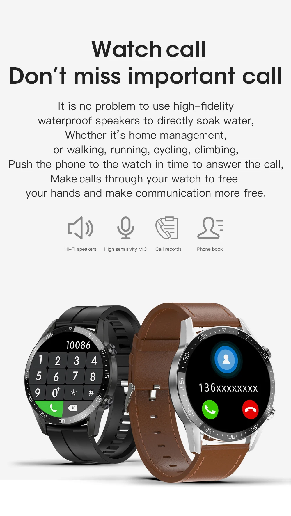 Не пропустите важный вызов, это не проблема с использованием высококачественных водонепроницаемых динамиков для прямого замачивания воды, будь то домашний менеджмент, или ходьба, бег, езда на велосипеде, альпинизм, нажмите телефон на часы вовремя, чтобы ответить на звонок, сделайте звонки через часы, чтобы освободить руки и сделать общение более бесплатным.