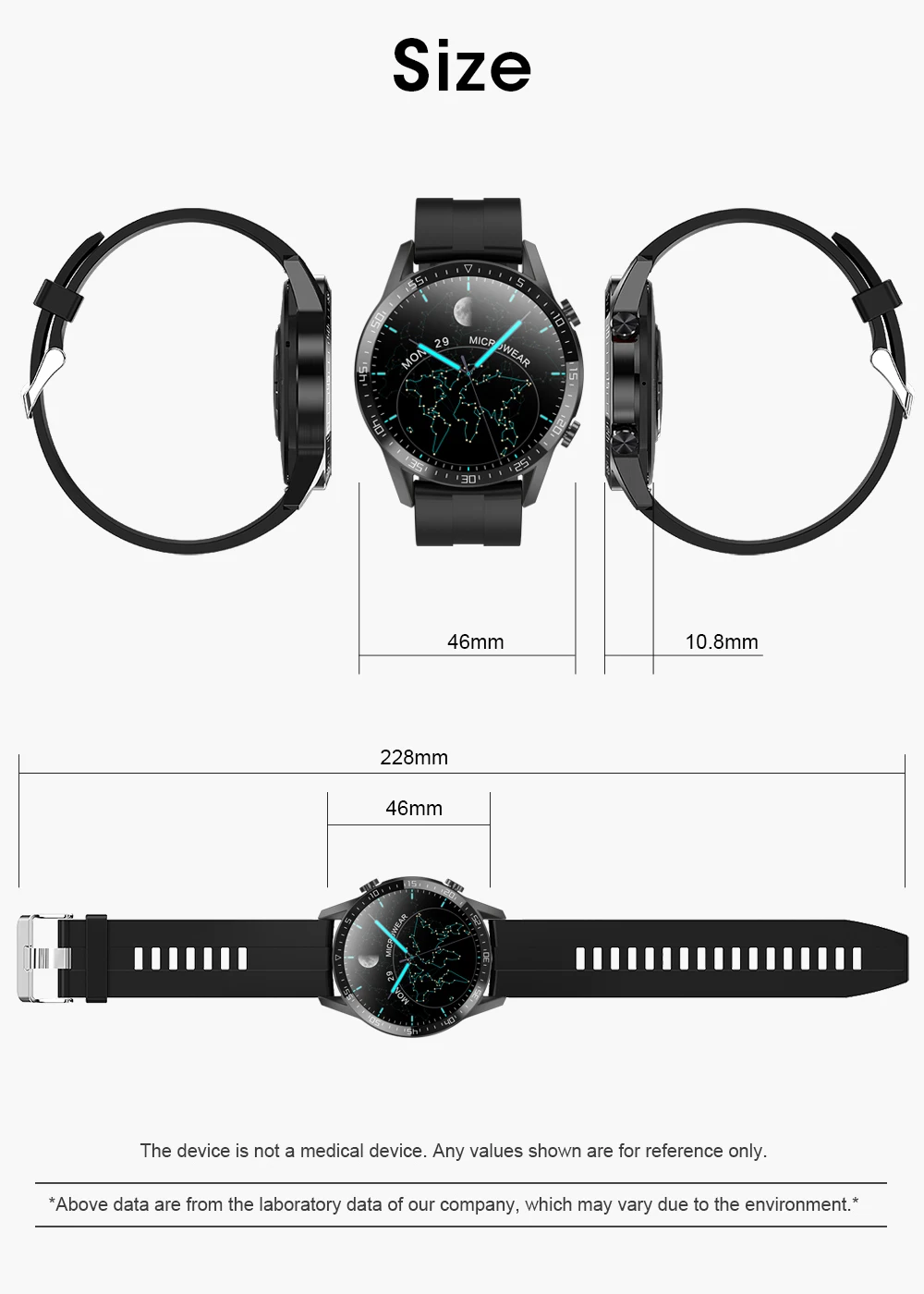 Большой экран высокой четкости дает четкий визуальный опыт на вашем запястье. Классическая двойная кнопка из нержавеющей стали. Стальной корпус и полностью стеклянный ободок прочные и износостойкие, новые и прочные. Тонкий корпус, легко сочетающийся с светильник, удобный фторкаучуковый ремешок или другие ремешки, вы можете легко контролировать любой случай.