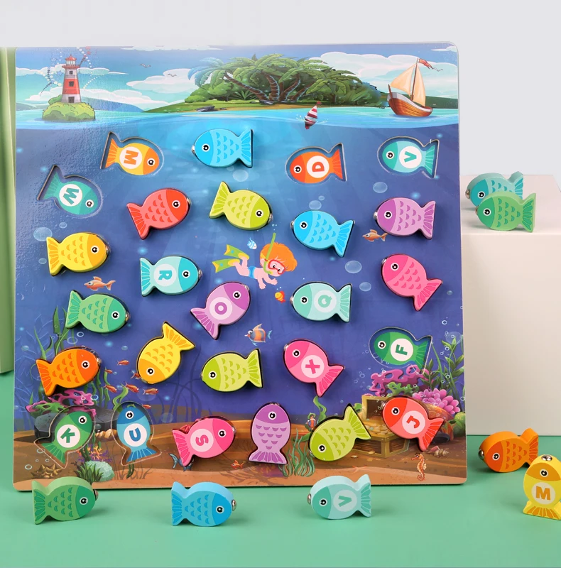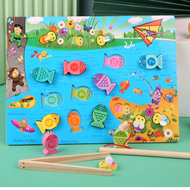 Дошкольные Деревянные игрушки Монтессори, магнитная рыболовная игра, Детский пазл, учебные пособия, Игрушки для раннего развития для детей, подарки для девочек